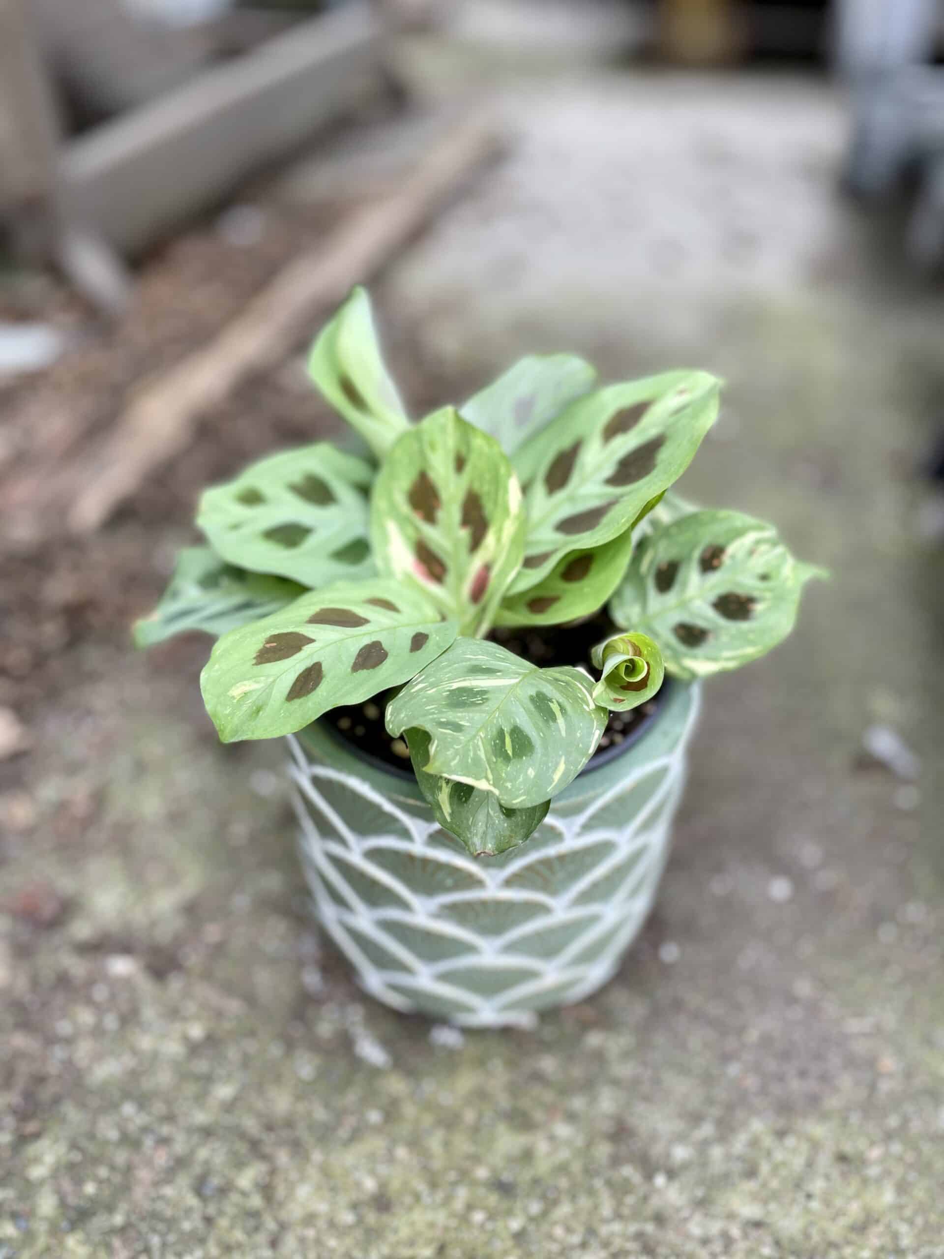 Bardzo rzadka, kolekcjonerska odmiana maranty, wzbogacona o kremowe, nieregularne wariegacje