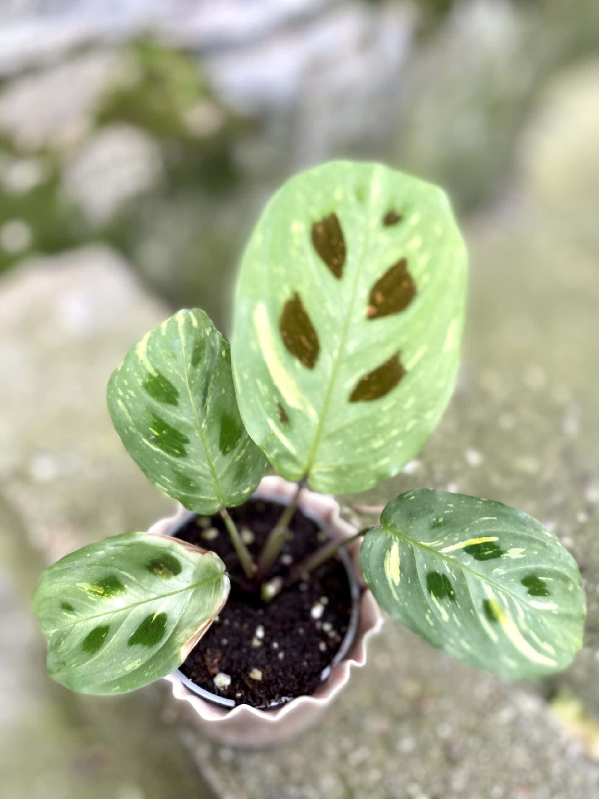 Bardzo rzadka, kolekcjonerska odmiana maranty, wzbogacona o kremowe, nieregularne wariegacje