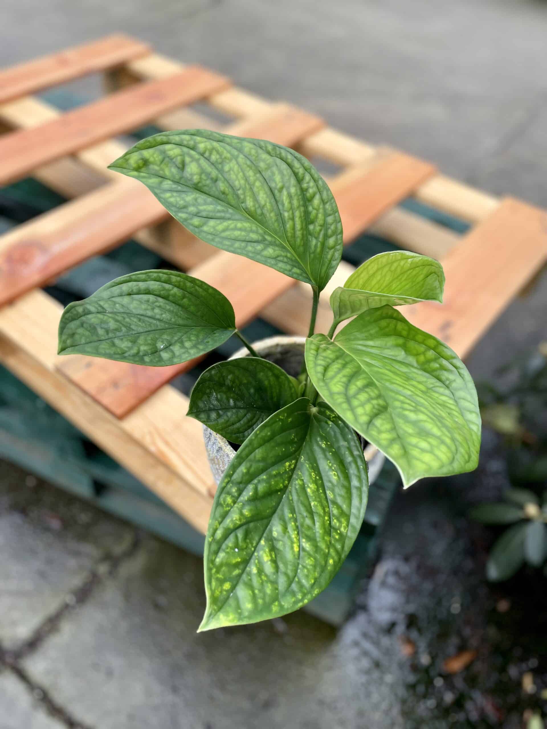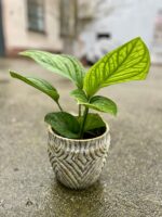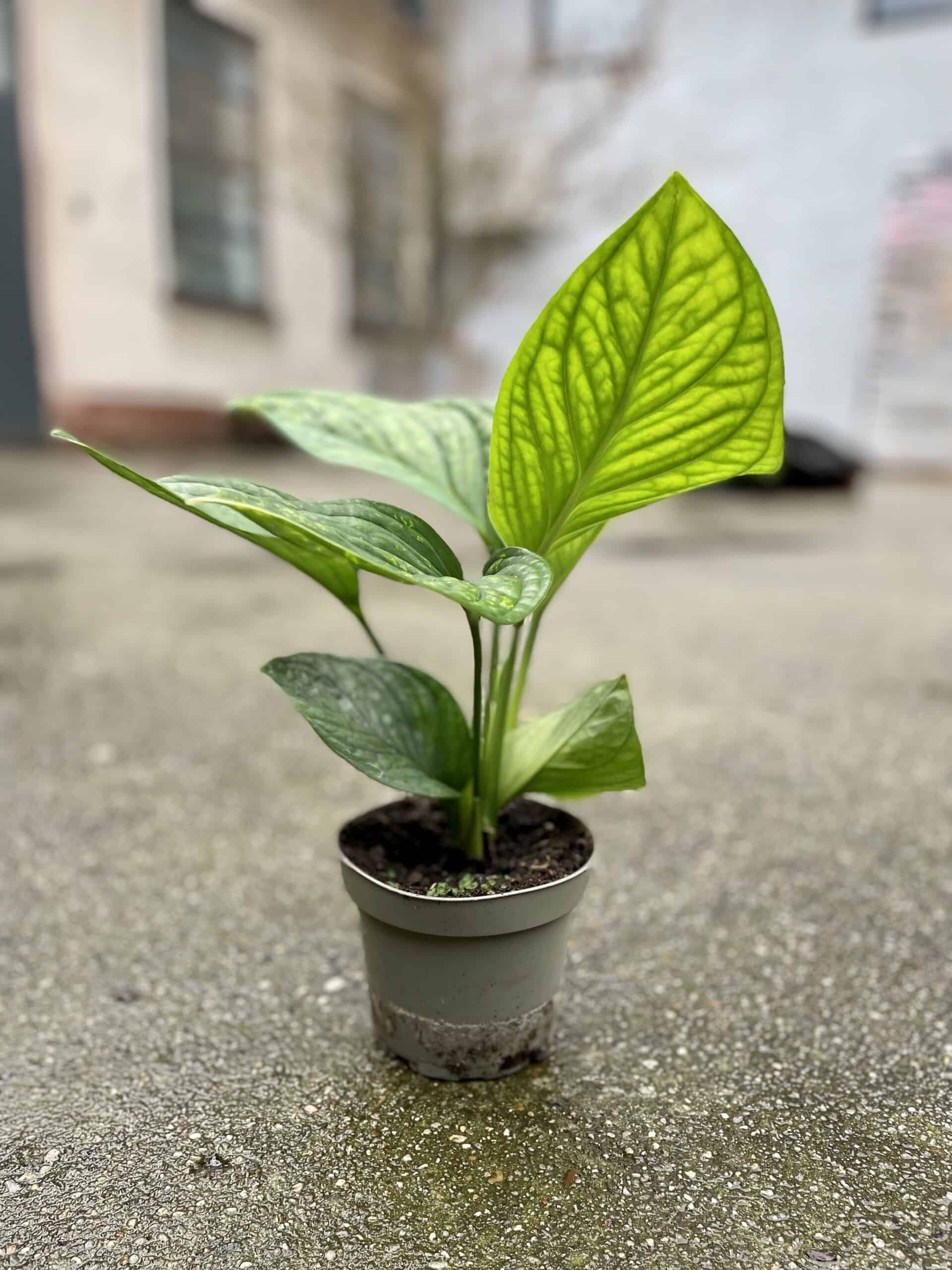 Widoczna na zdjęciu roślina: Monstera pinnatipartita ma wysokość około 40 cm. Jej doniczka ma 13 cm średnicy oraz 10 cm wysokości.