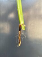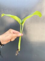 Widoczna na zdjęciu roślina: Monstera pinnatipartita - sadzonka szczytowa ma wysokość około 1 cm. Jej doniczka ma 1 cm średnicy oraz 1 cm wysokości.