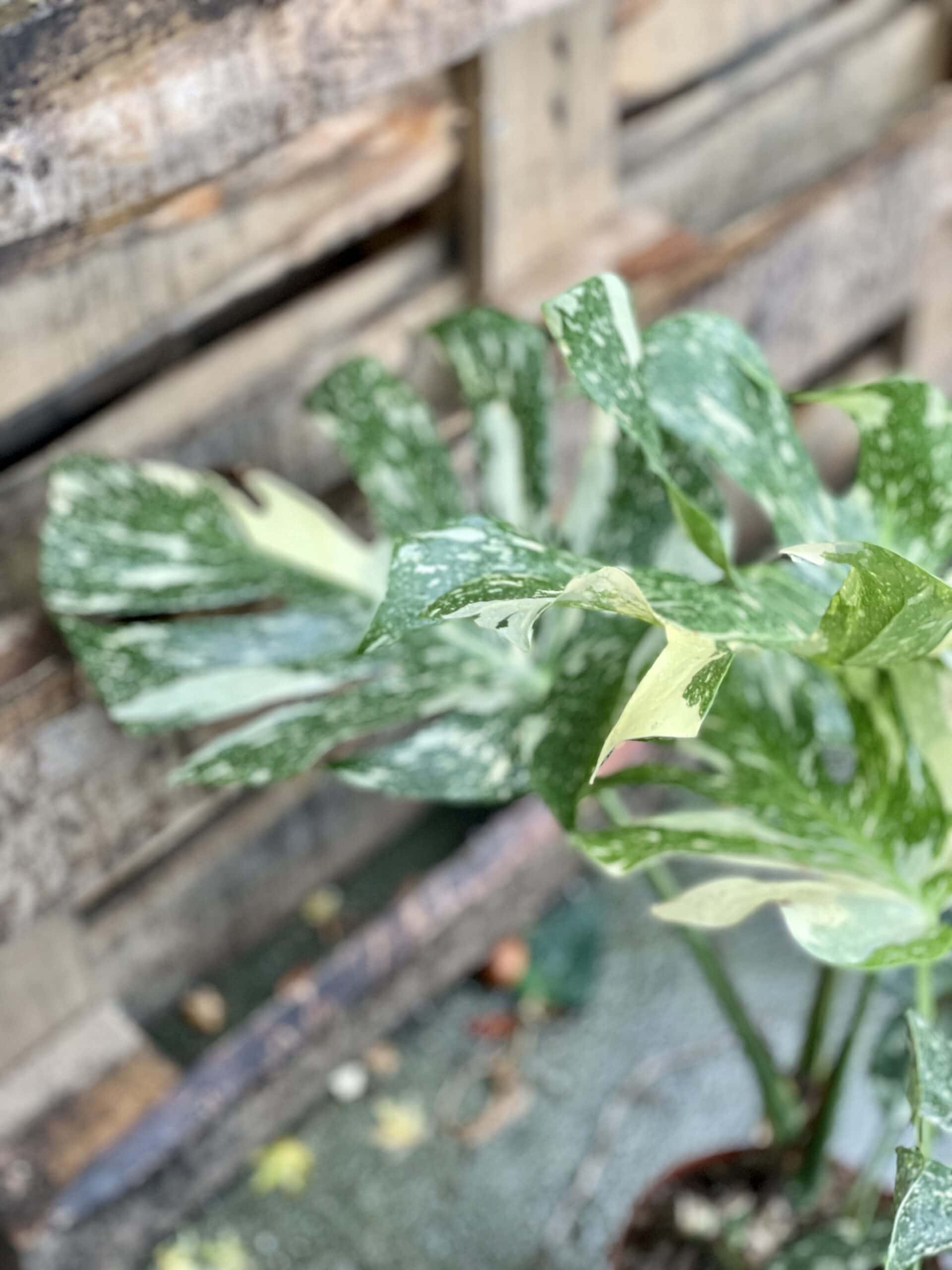 Stanowisko: Bardzo jasne, ale osłonięte przed bezpośrednimi promieniami słonecznymi, które mogłyby poparzyć liście. Jasne części rośliny nie zawierają chlorofilu, więc proces fotosyntezy jest utrudniony - z tego względu Monstera Thai Constellation wymaga dużej ilości światła przez cały rok i może być konieczne sztuczne doświetlanie jej zimą.