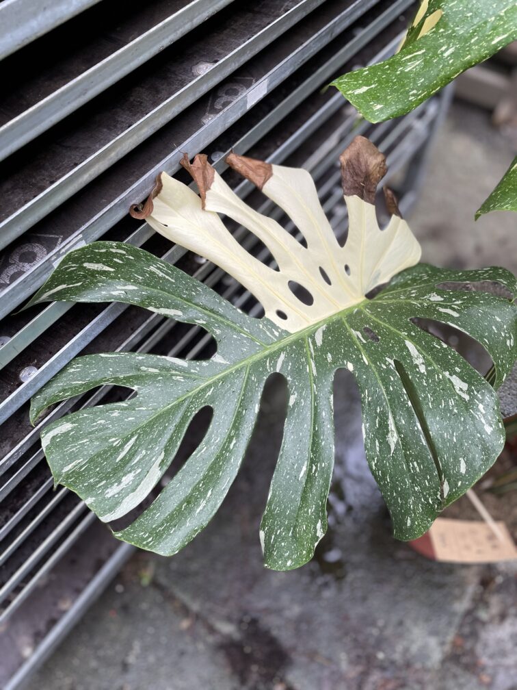 Na co trzeba uważać?: Roślinę, szczególnie w okresie letnim przeglądamy pod kątem obecności szkodników takich jak: przędziorki, wciornastki. Uważamy również na podlewanie, nie dopuszczamy do nadmiernego podlewania i zalegania wody w podłożu. W przeciwnym razie na liściach szybko pojawią się plamy. Jeśli na jasnych częściach Twojej monstery pojawiają się suche, brązowe plamy, może to oznaczać, że roślina dostaje niewystarczającą ilość światła.