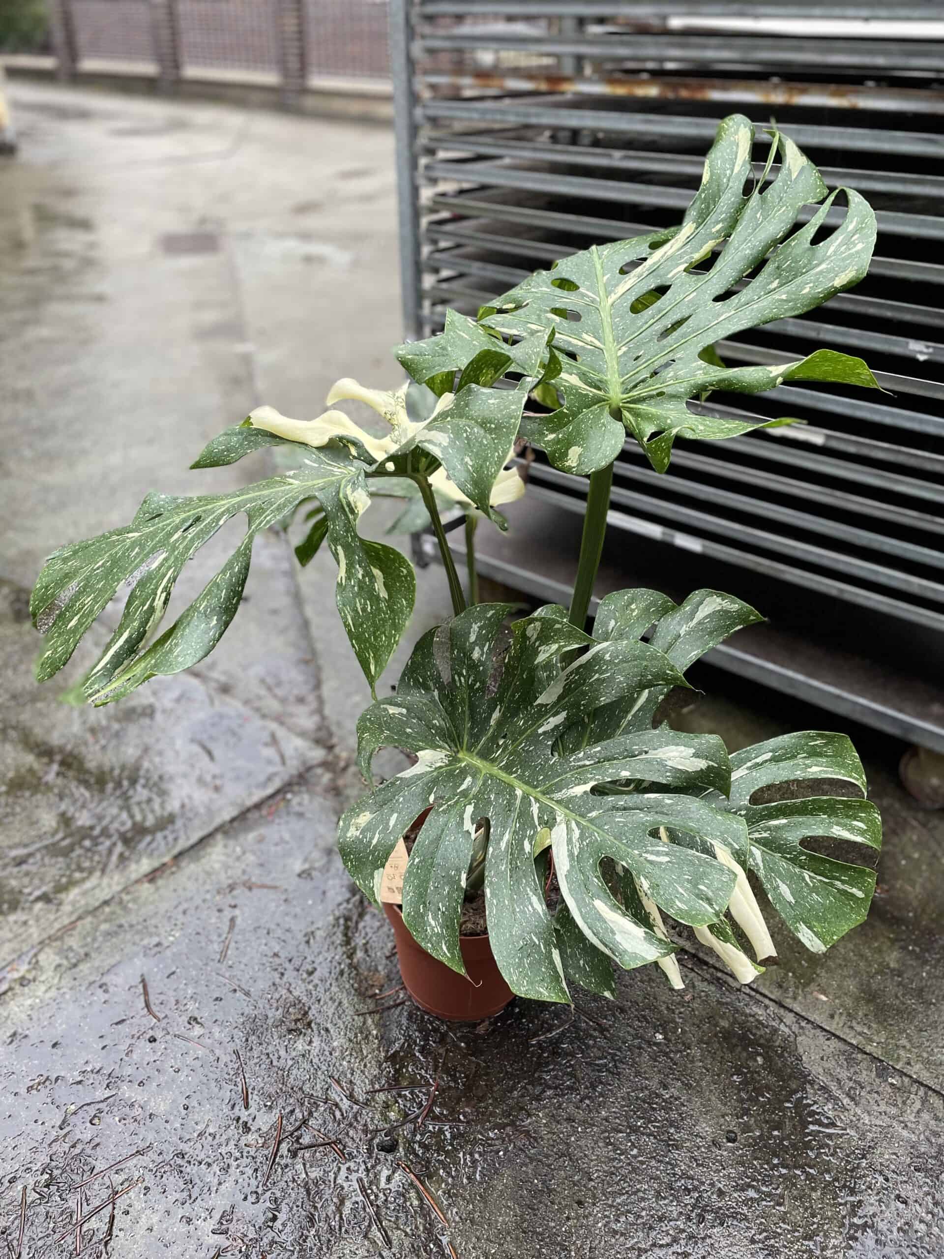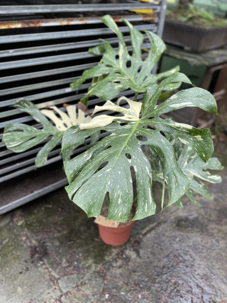 Stanowisko: Bardzo jasne, ale osłonięte przed bezpośrednimi promieniami słonecznymi, które mogłyby poparzyć liście. Jasne części rośliny nie zawierają chlorofilu, więc proces fotosyntezy jest utrudniony - z tego względu Monstera Thai Constellation wymaga dużej ilości światła przez cały rok i może być konieczne sztuczne doświetlanie jej zimą.