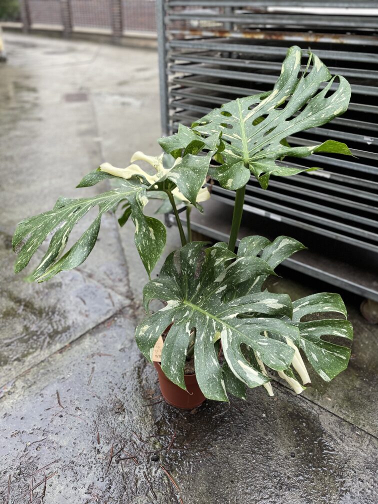 Wielu do niej wzdycha i wielu poszukuje, bo jest niezwykle trudno dostępna. Monstera Thai Constellation to wyhodowana w tajlandzkim laboratorium kuzynka Monstery Deliciosa Variegata. Każdy liść jest wyjątkowy i cudnie poplamiony kremem i bielą – wariegacja może występować w postaci kilku nieregularnych plam lub obejmować nawet większą część liścia.