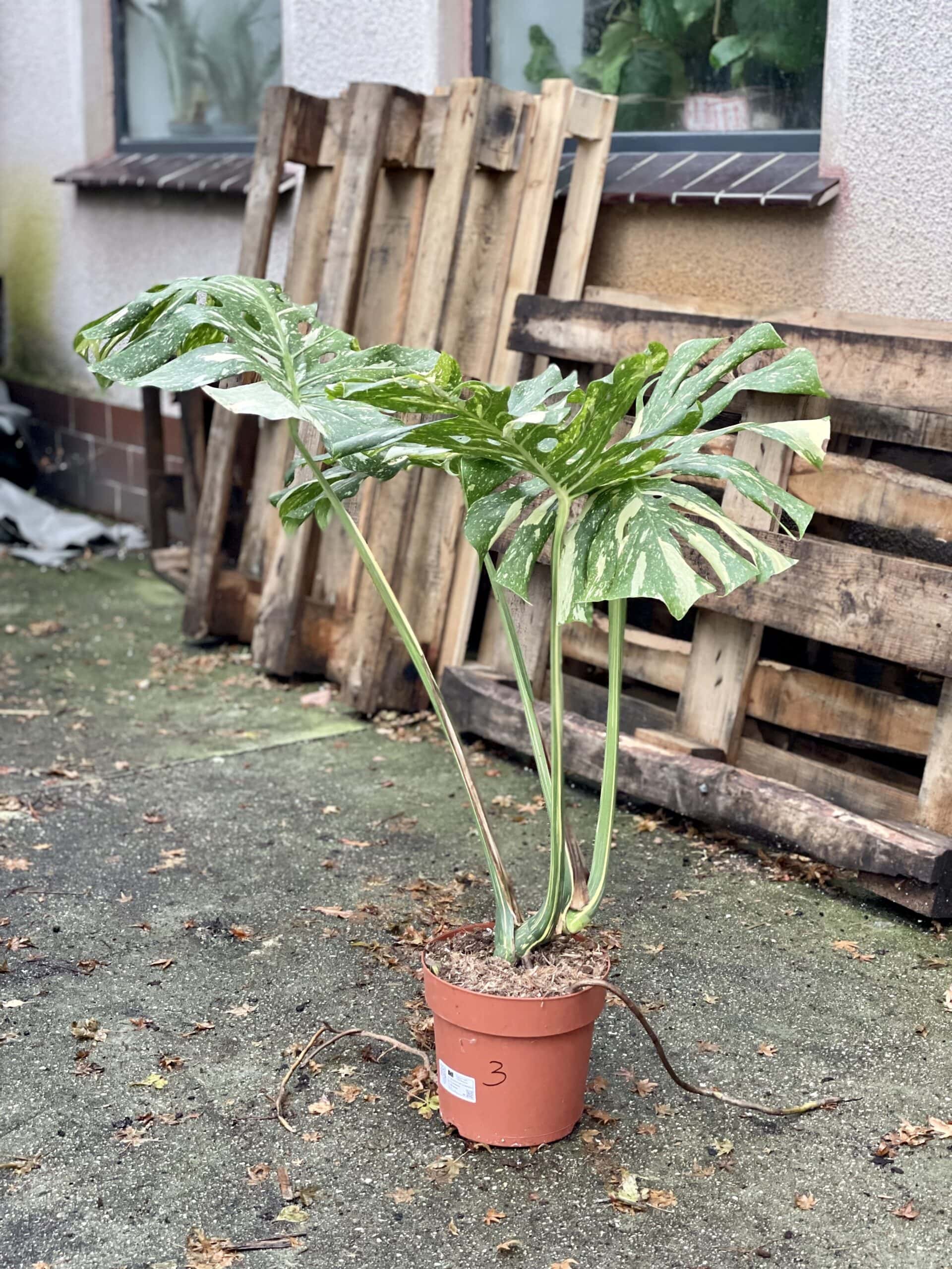 Stanowisko: Bardzo jasne, ale osłonięte przed bezpośrednimi promieniami słonecznymi, które mogłyby poparzyć liście. Jasne części rośliny nie zawierają chlorofilu, więc proces fotosyntezy jest utrudniony - z tego względu Monstera Thai Constellation wymaga dużej ilości światła przez cały rok i może być konieczne sztuczne doświetlanie jej zimą.