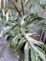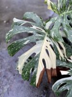 Wielu do niej wzdycha i wielu poszukuje, bo jest niezwykle trudno dostępna. Monstera Thai Constellation to wyhodowana w tajlandzkim laboratorium kuzynka Monstery Deliciosa Variegata. Każdy liść jest wyjątkowy i cudnie poplamiony kremem i bielą – wariegacja może występować w postaci kilku nieregularnych plam lub obejmować nawet większą część liścia.