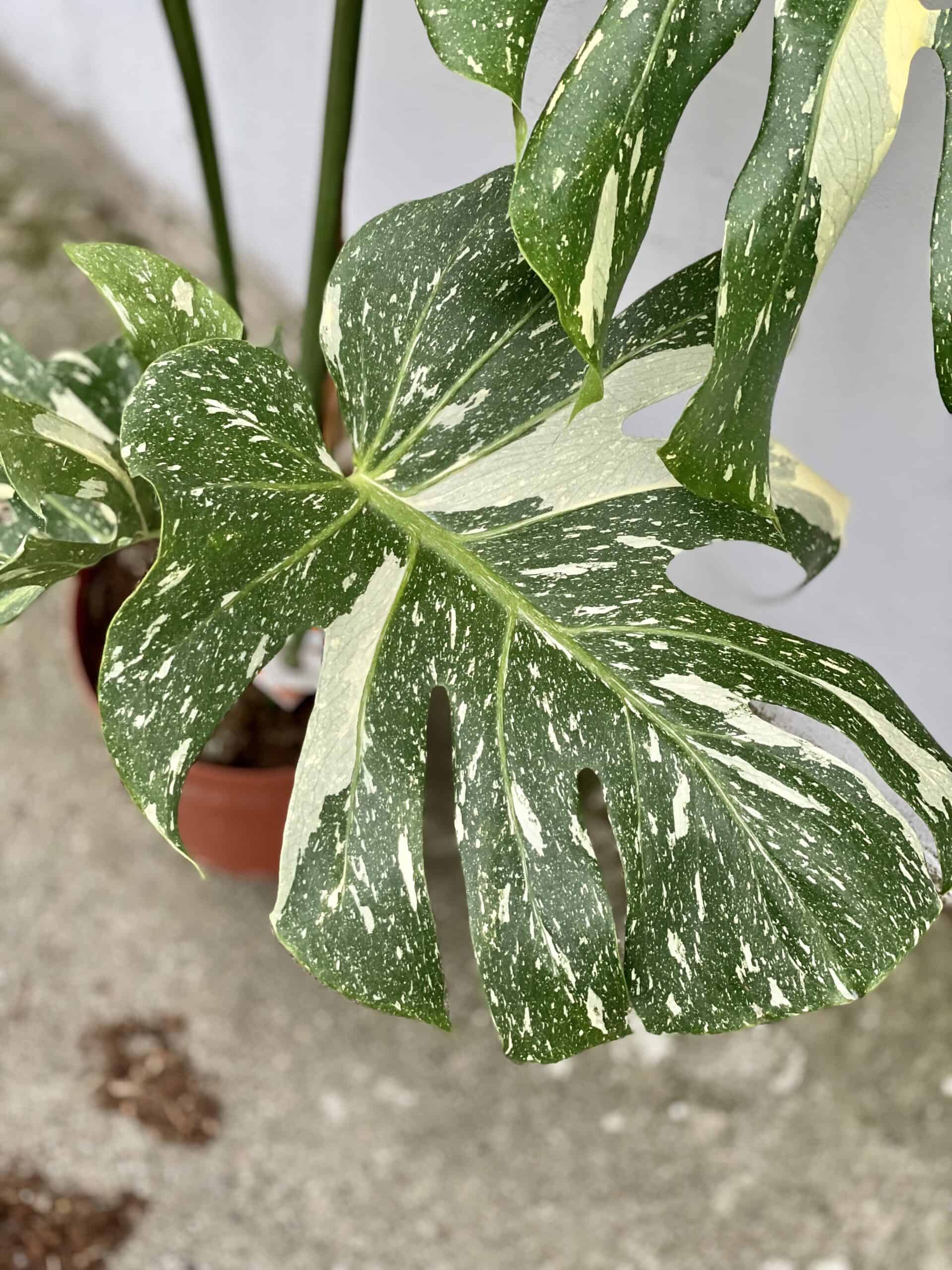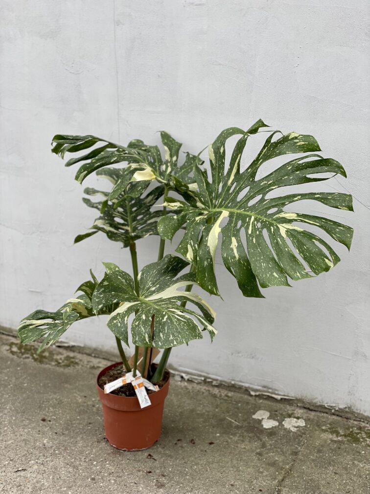 Stanowisko: Bardzo jasne, ale osłonięte przed bezpośrednimi promieniami słonecznymi, które mogłyby poparzyć liście. Jasne części rośliny nie zawierają chlorofilu, więc proces fotosyntezy jest utrudniony - z tego względu Monstera Thai Constellation wymaga dużej ilości światła przez cały rok i może być konieczne sztuczne doświetlanie jej zimą.