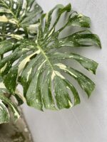 Wielu do niej wzdycha i wielu poszukuje, bo jest niezwykle trudno dostępna. Monstera Thai Constellation to wyhodowana w tajlandzkim laboratorium kuzynka Monstery Deliciosa Variegata. Każdy liść jest wyjątkowy i cudnie poplamiony kremem i bielą – wariegacja może występować w postaci kilku nieregularnych plam lub obejmować nawet większą część liścia.
