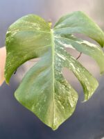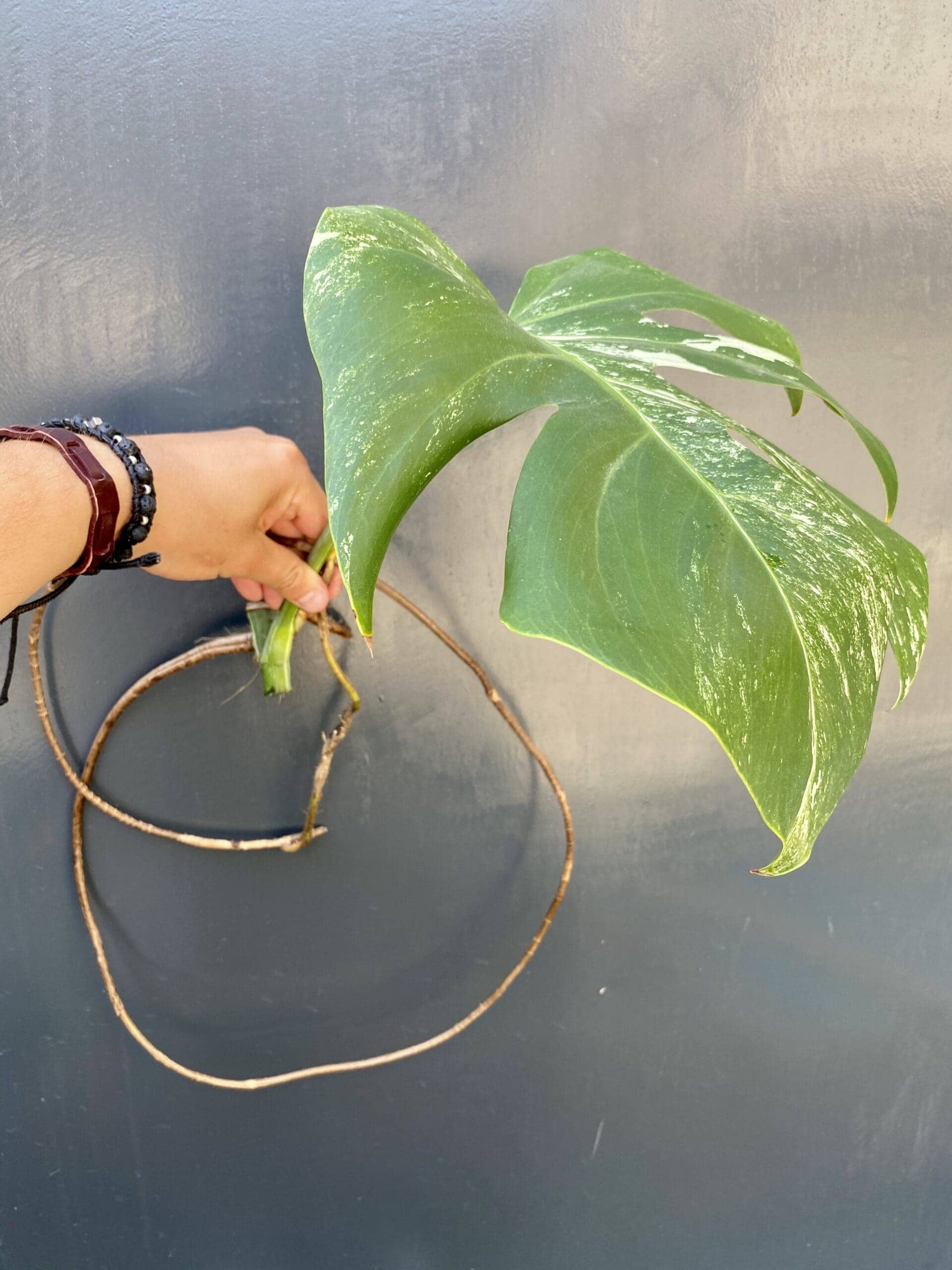 Widoczna na zdjęciu roślina: Monstera variegata - sadzonka pędowa ma wysokość około 30 cm. Jej doniczka ma 1 cm średnicy oraz 1 cm wysokości.