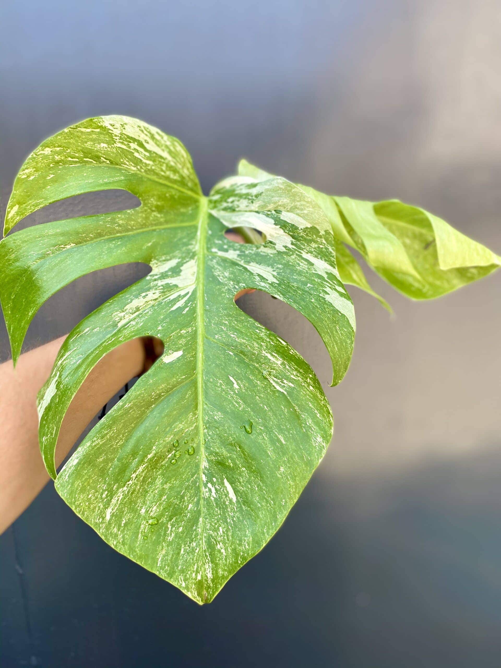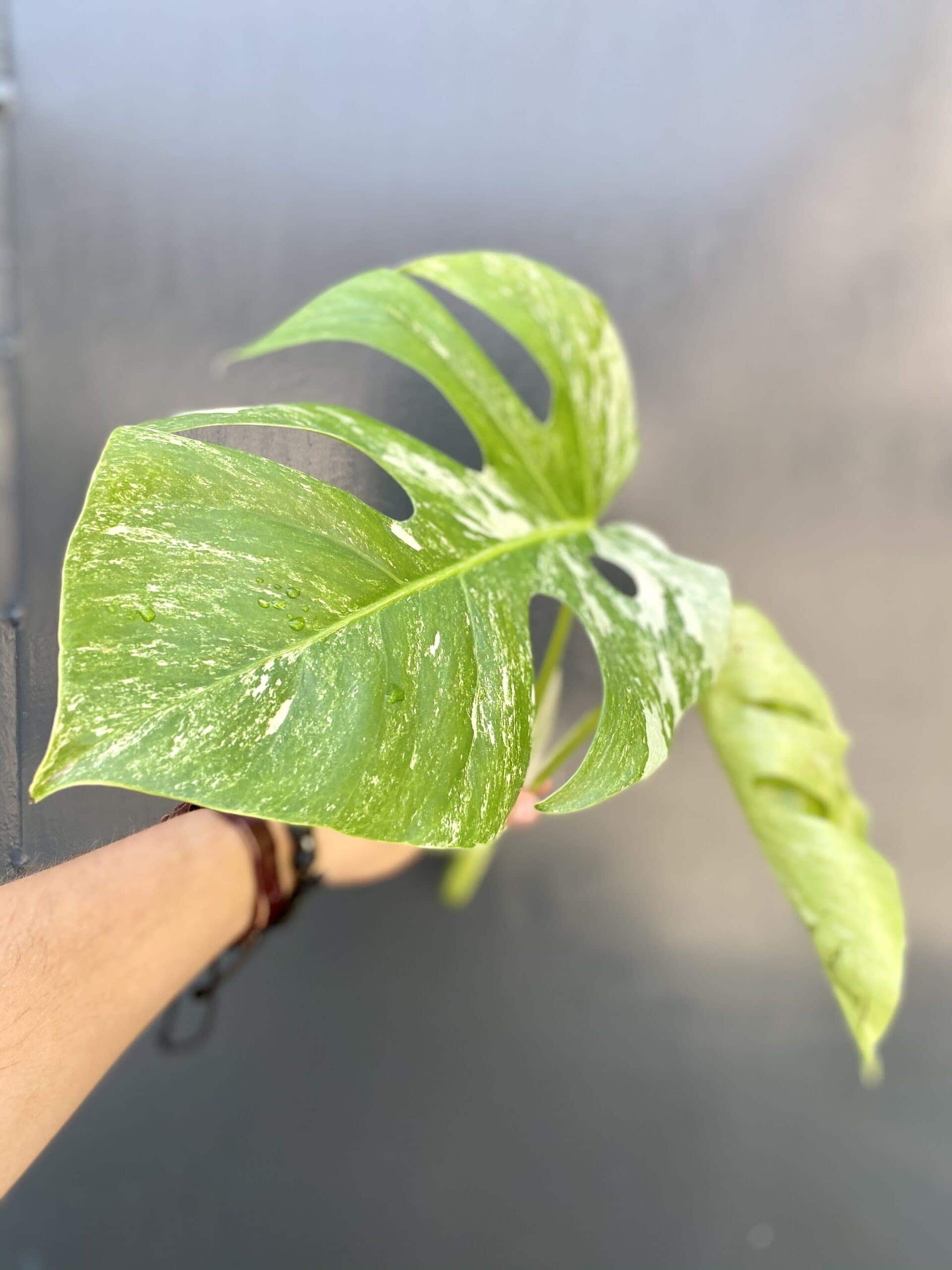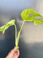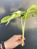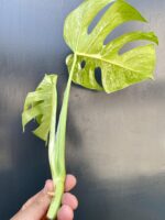 Widoczna na zdjęciu roślina: Monstera Variegata sadzonka szczytowa ma wysokość około 1 cm. Jej doniczka ma 1 cm średnicy oraz 1 cm wysokości.