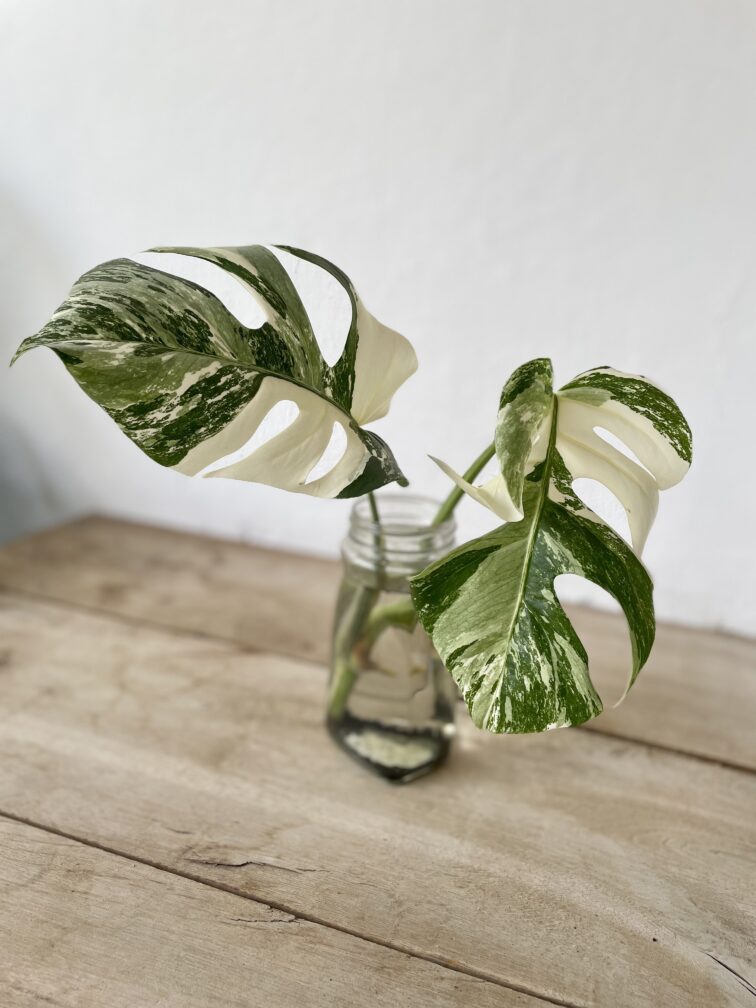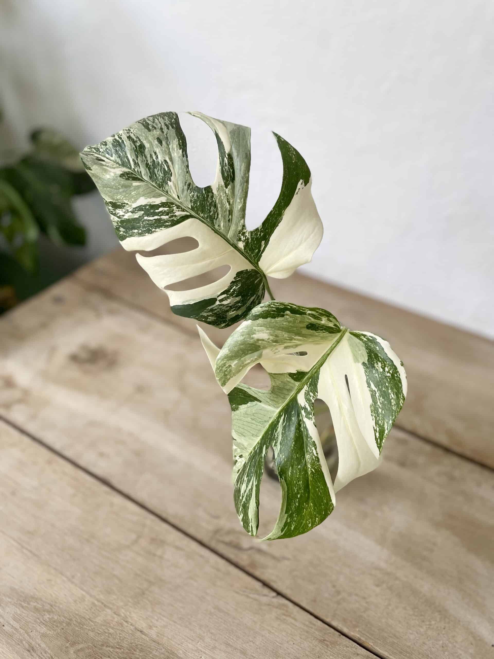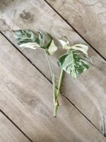 Widoczna na zdjęciu roślina: Monstera Variegata sadzonka szczytowa ma wysokość około 40 cm. Jej doniczka ma 1 cm średnicy oraz 1 cm wysokości.