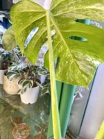 Widoczna na zdjęciu roślina: Monstera Variegata Sadzonka Szczytowa 2 ma wysokość około 32 cm. Jej doniczka ma 1 cm średnicy oraz 1 cm wysokości.