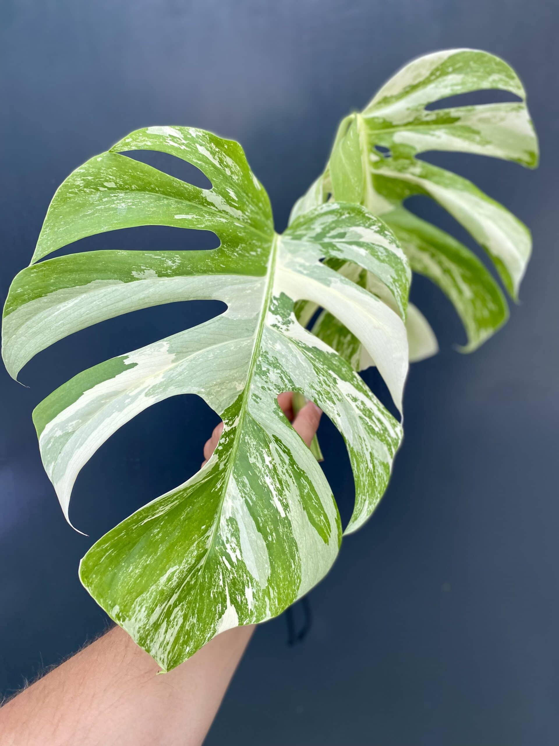 Widoczna na zdjęciu roślina: Monstera Variegata sadzonka szczytowa ma wysokość około 20 cm. Jej doniczka ma 1 cm średnicy oraz 1 cm wysokości.