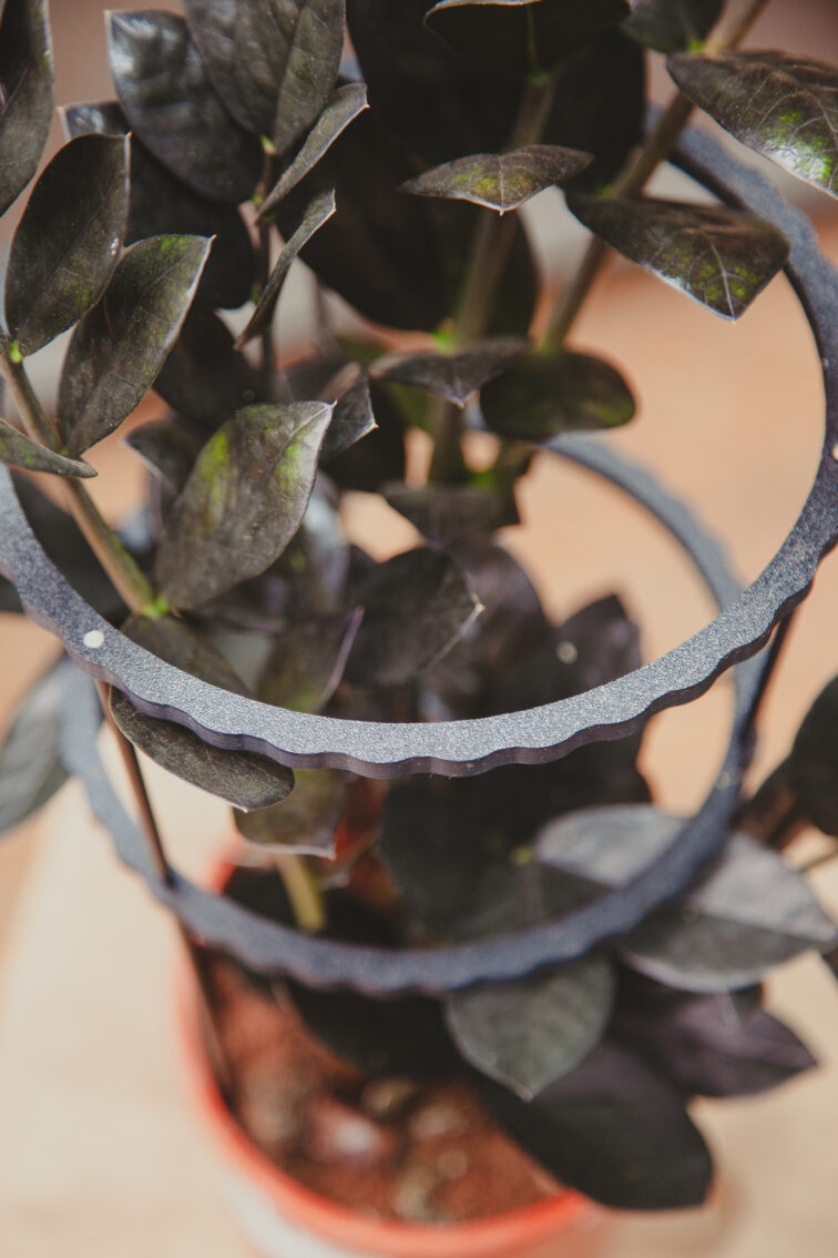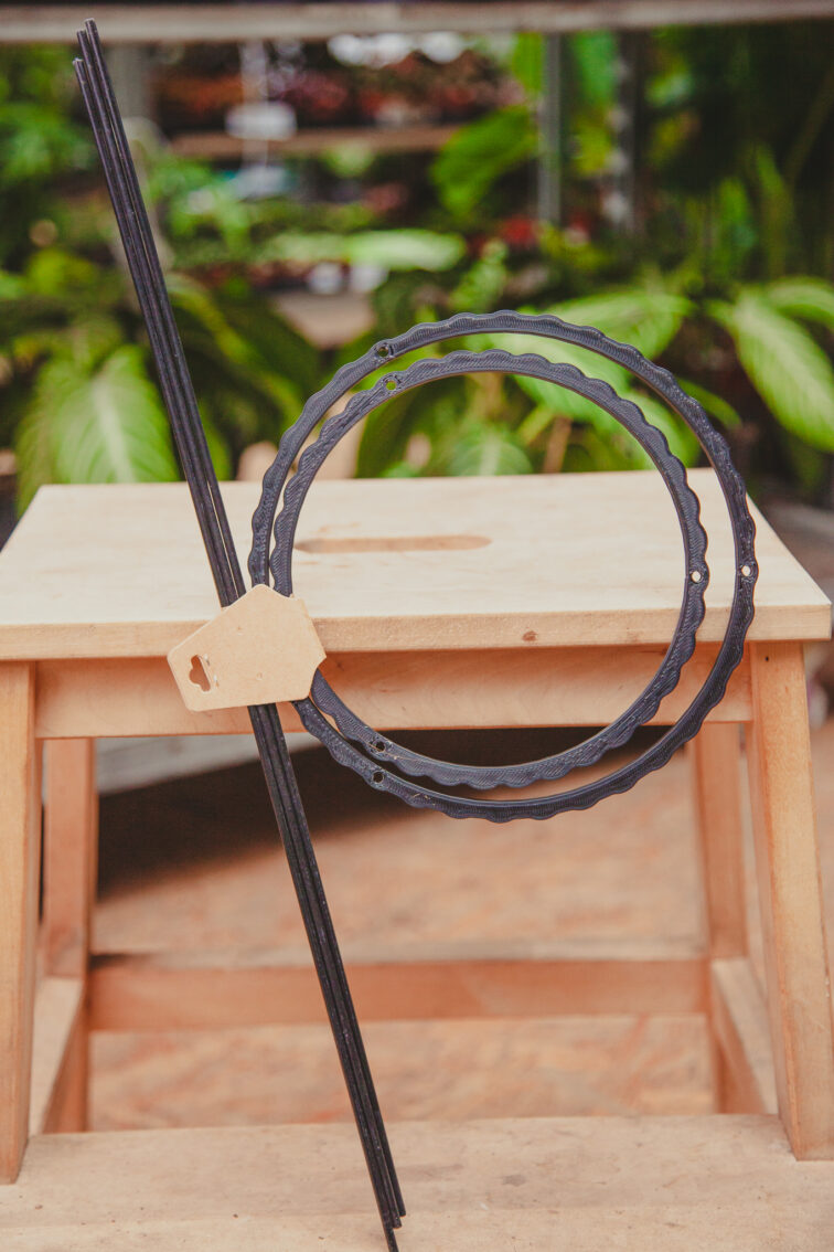 Obręcz do podtrzymywania pędów o średnicy 19,5cm. Wykonana z tworzywa, nóżki metalowe, wysokość 50cm.