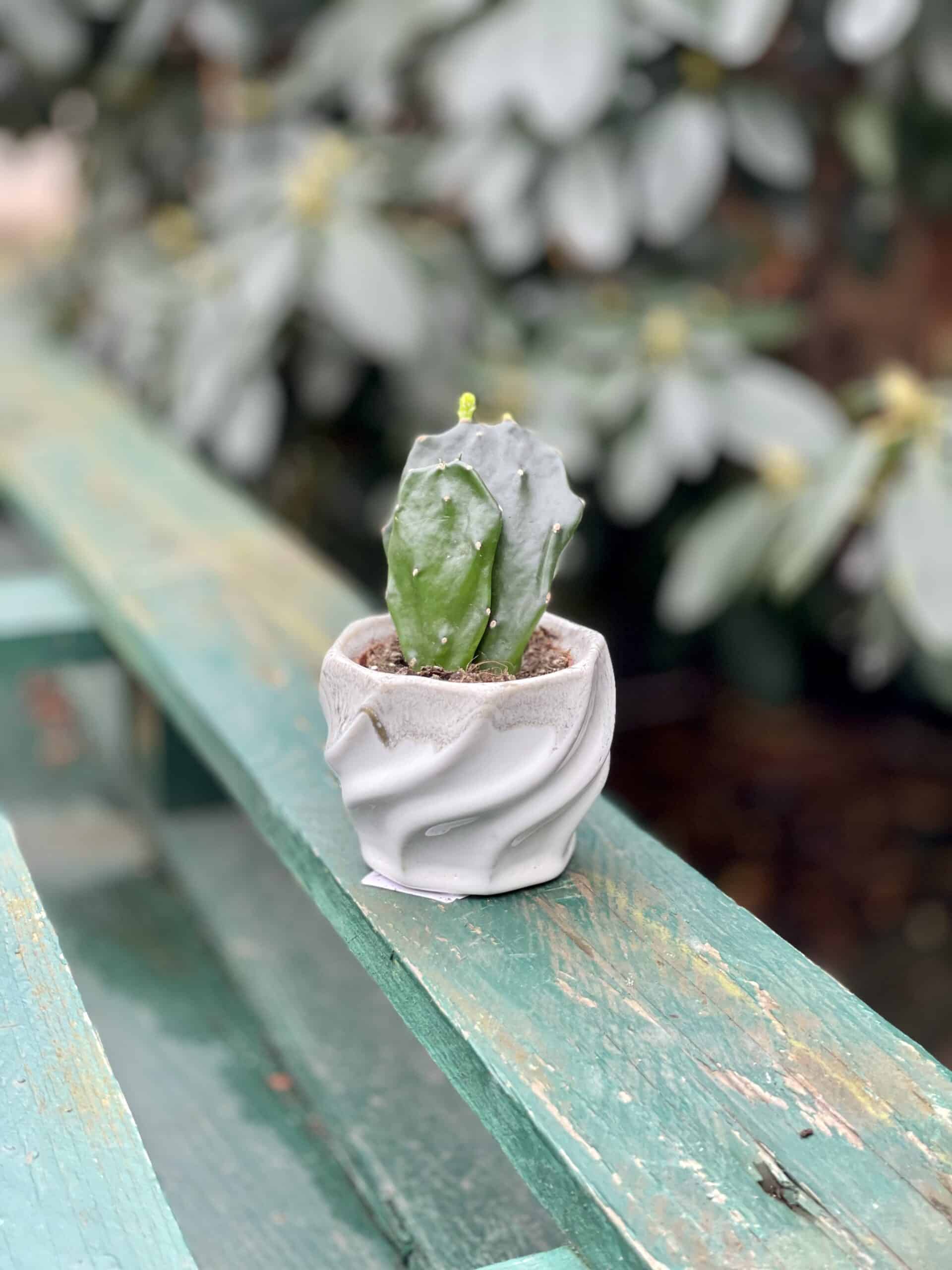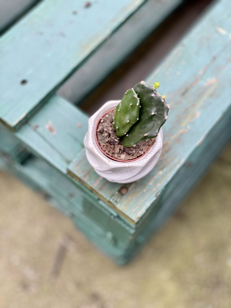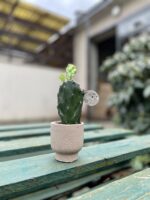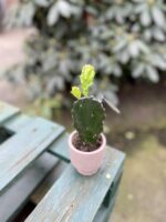 Widoczna na zdjęciu roślina: Opuntia jamaicensis ma wysokość około 20 cm. Jej doniczka ma 6 cm średnicy oraz 5 cm wysokości.