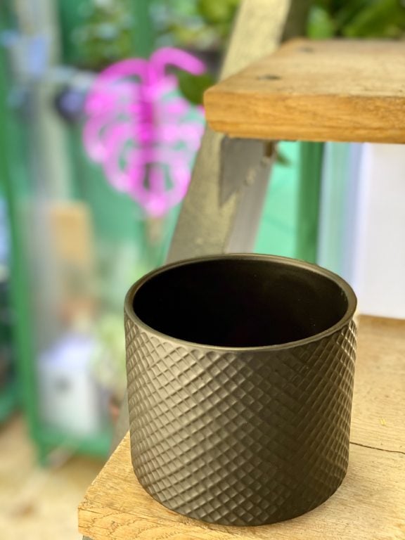 Na jednym ze zdjęć osłonka prezentowana jest w zestawie z rosliną: Peperomia albovittata Napoli NightsNIEDOSTĘPNY