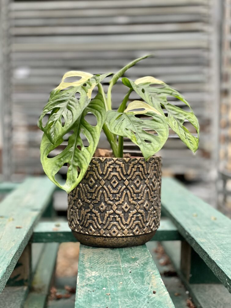 Na jednym ze zdjęć osłonka prezentowana jest w zestawie z rosliną: Monstera Monkey Mask variegata (adansonii variegata) 3NIEDOSTĘPNY