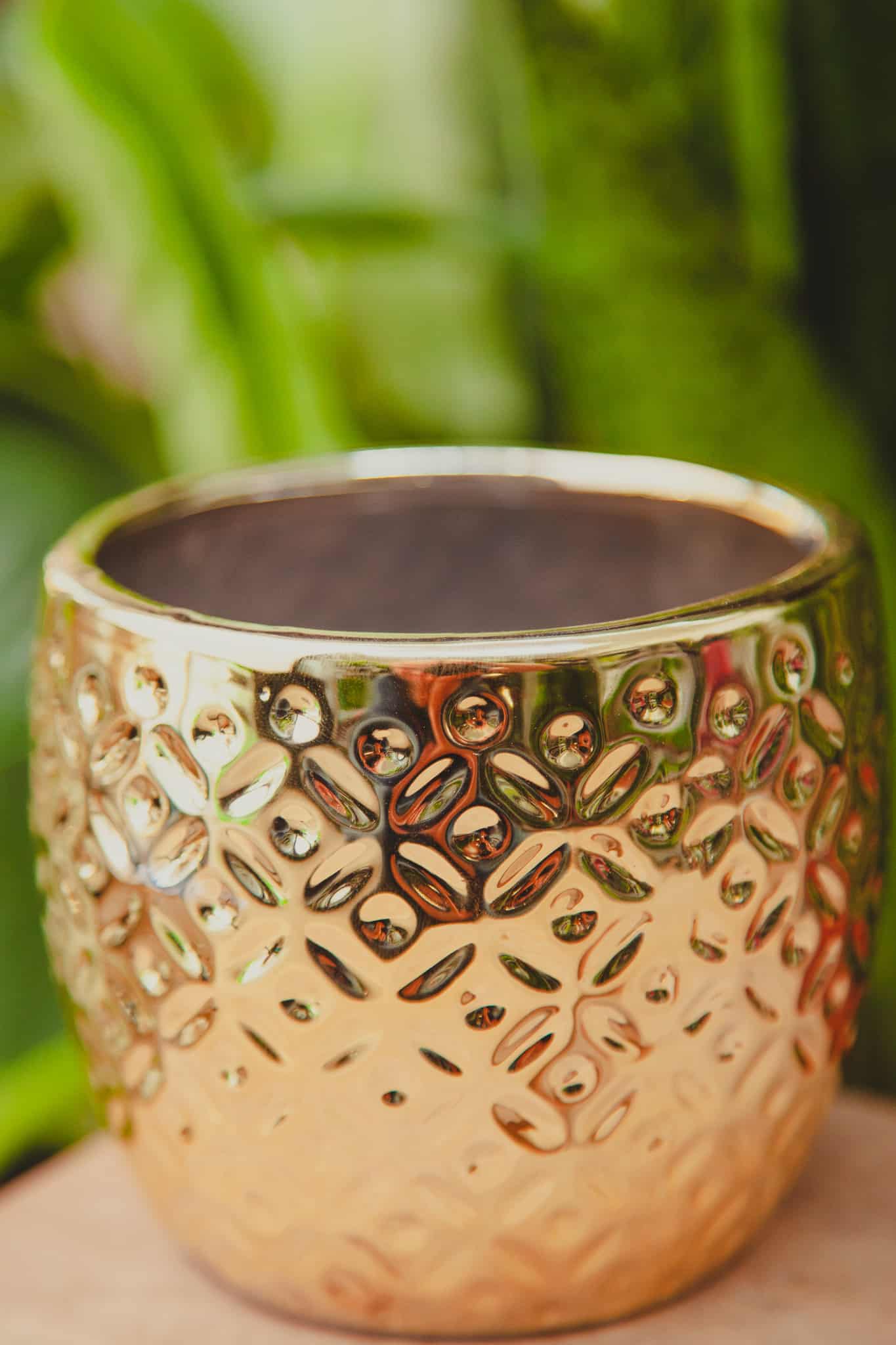 Osłonka Arabesque Gold nadaje się do roślin z doniczką o średnicy od 7 cm do 10 cm, oraz wysokości mniejszej niż 10 cm.