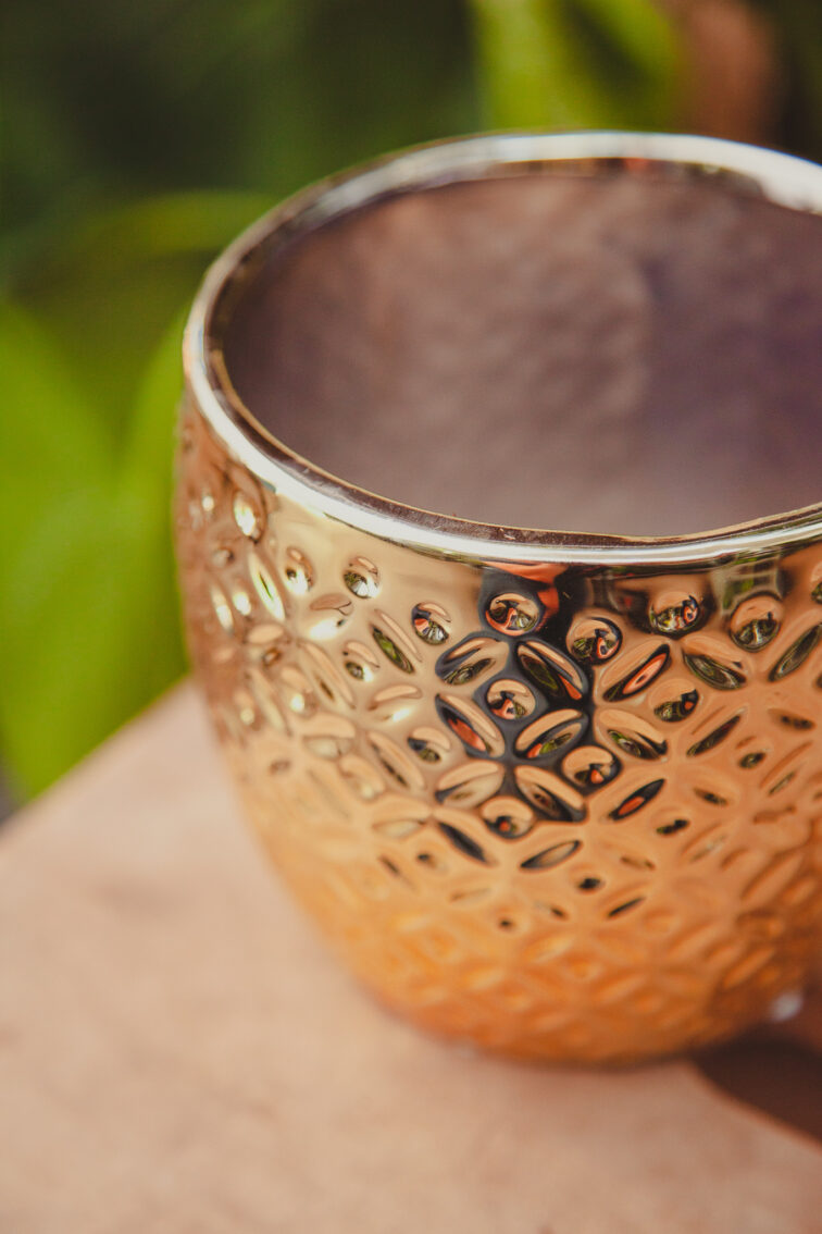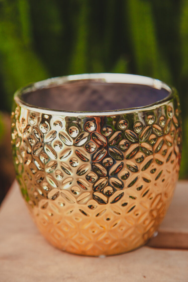 Osłonka Arabesque Gold nadaje się do roślin z doniczką o średnicy od 9 cm do 12 cm, oraz wysokości mniejszej niż 12 cm.