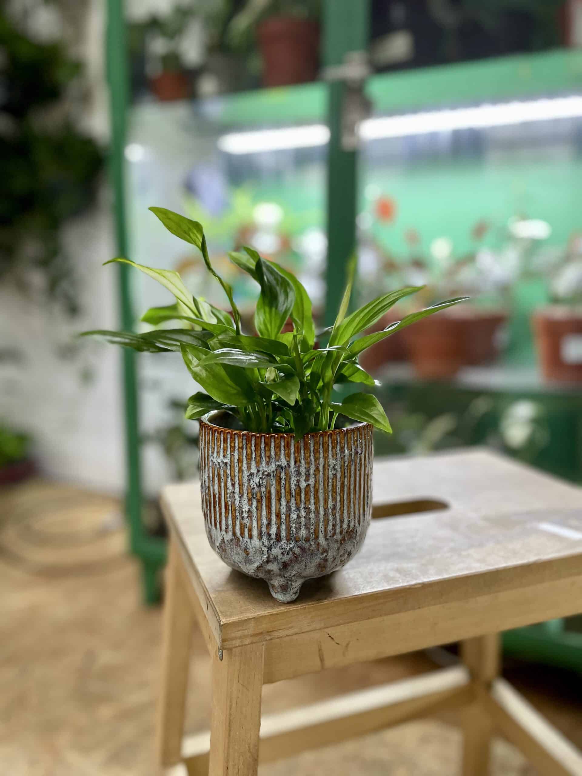 Na jednym ze zdjęć osłonka prezentowana jest w zestawie z rosliną: Spathiphyllum Pearl Cupido (Skrzydłokwiat)NIEDOSTĘPNY