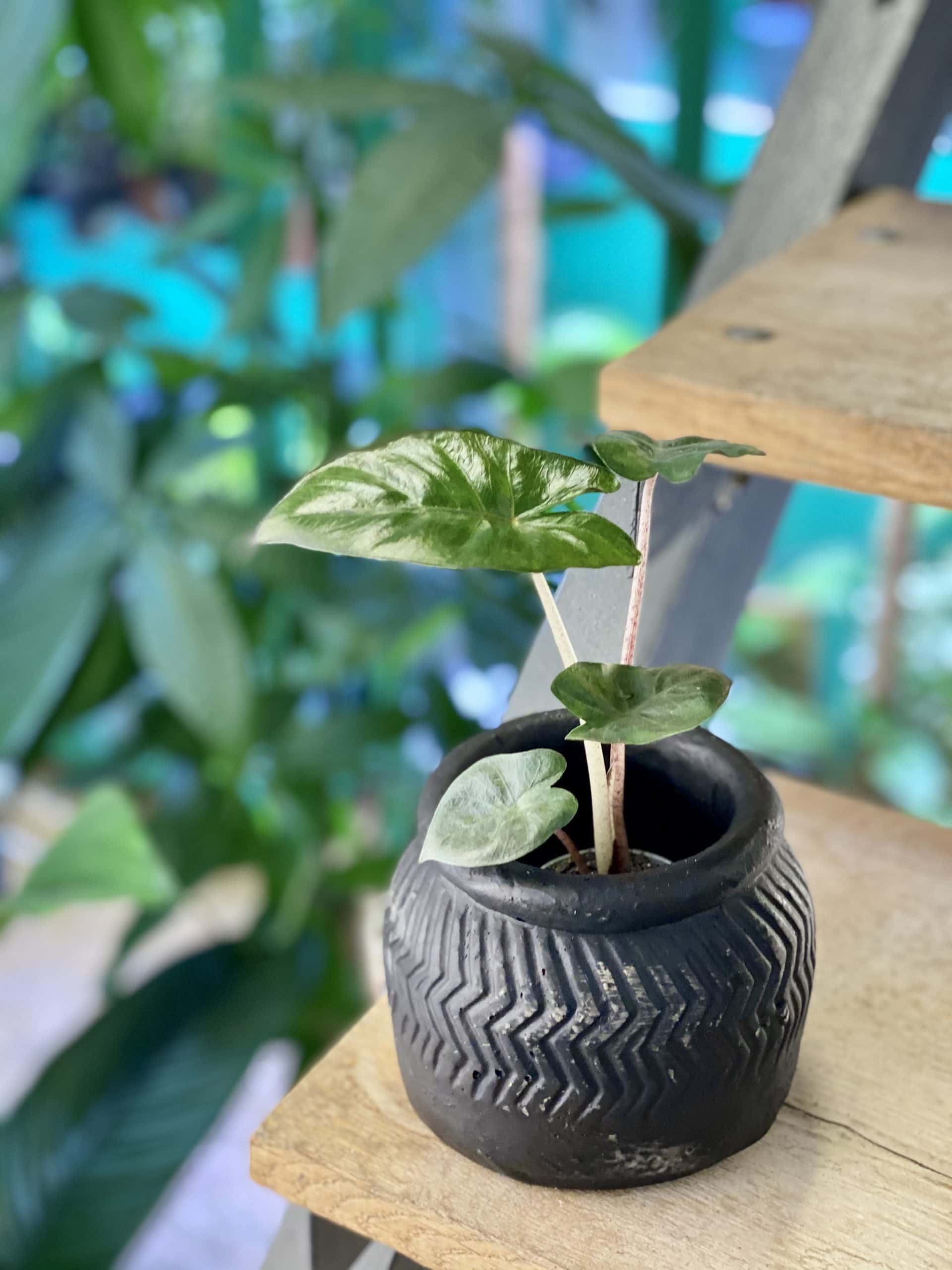 Na jednym ze zdjęć osłonka prezentowana jest w zestawie z rosliną: Alocasia Yucatan PrincessNIEDOSTĘPNY