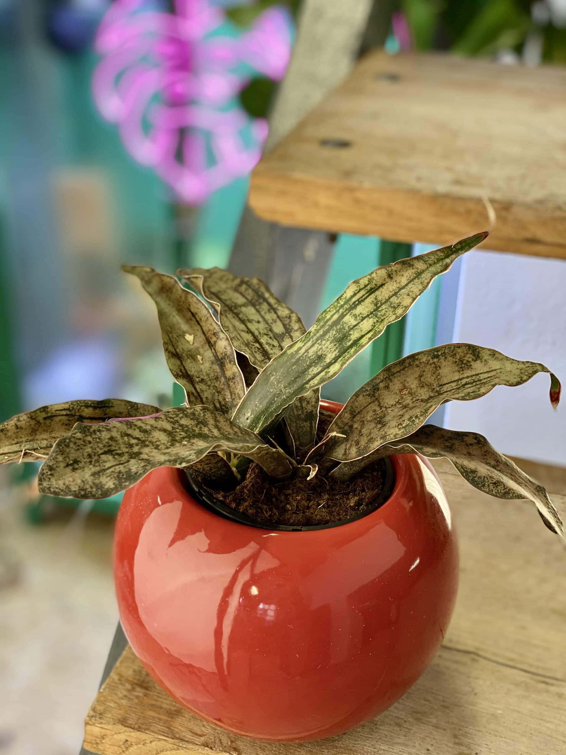 Na jednym ze zdjęć osłonka prezentowana jest w zestawie z rosliną: Sansevieria kirkii CoppertoneNIEDOSTĘPNY
