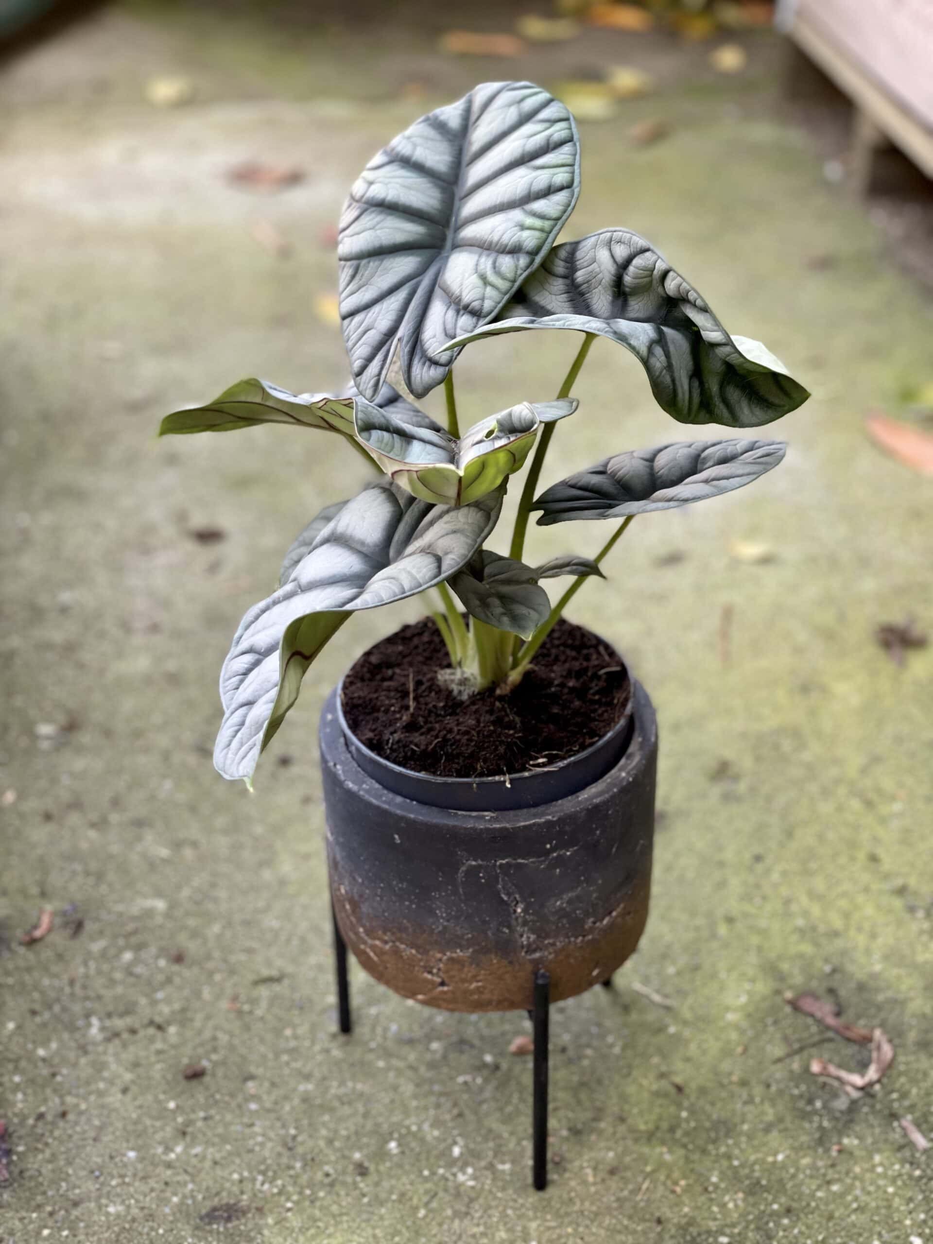 Na jednym ze zdjęć osłonka prezentowana jest w zestawie z rosliną: Alocasia baginda Silver DragonNIEDOSTĘPNY