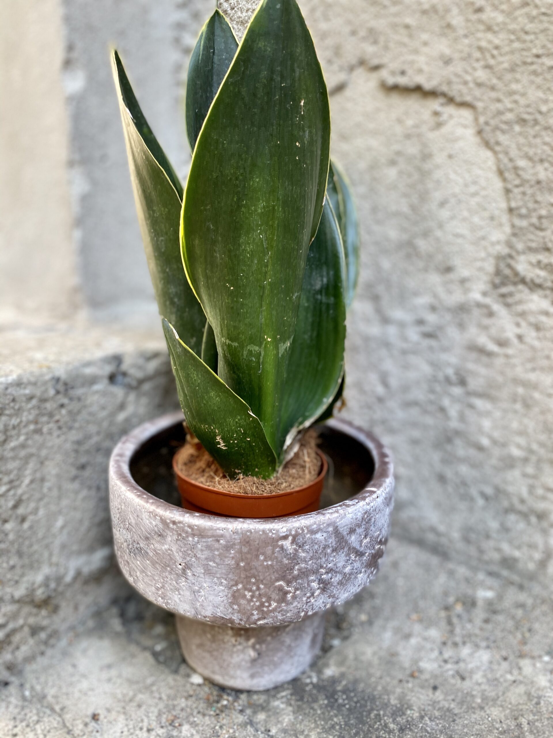 Na jednym ze zdjęć osłonka prezentowana jest w zestawie z rosliną: Sansevieria trifasciata Black DiamondNIEDOSTĘPNY