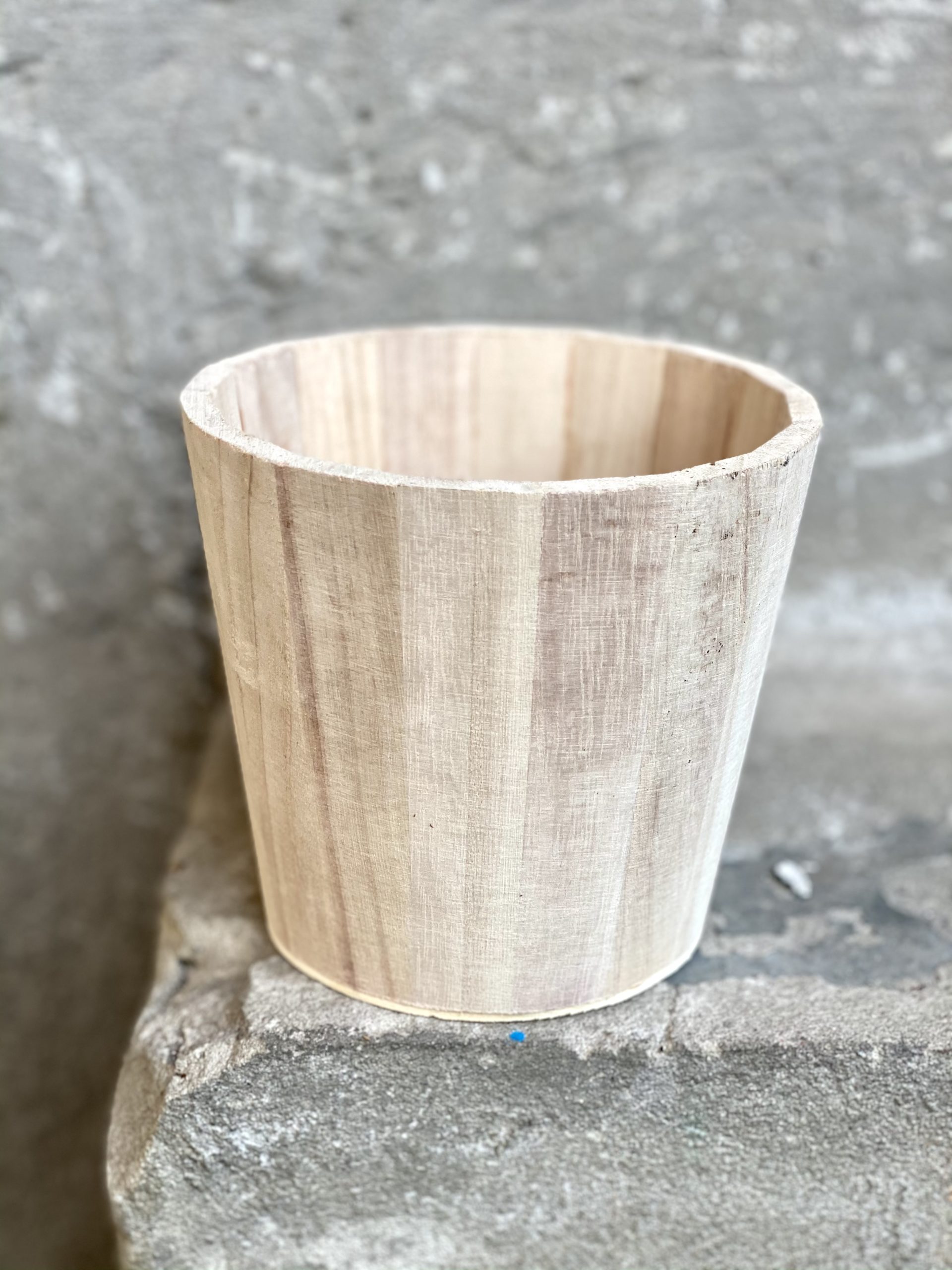 Widoczna na zdjęciu Osłonka drewniana Wooden ma 12 cm średnicy oraz 12 cm wysokości.