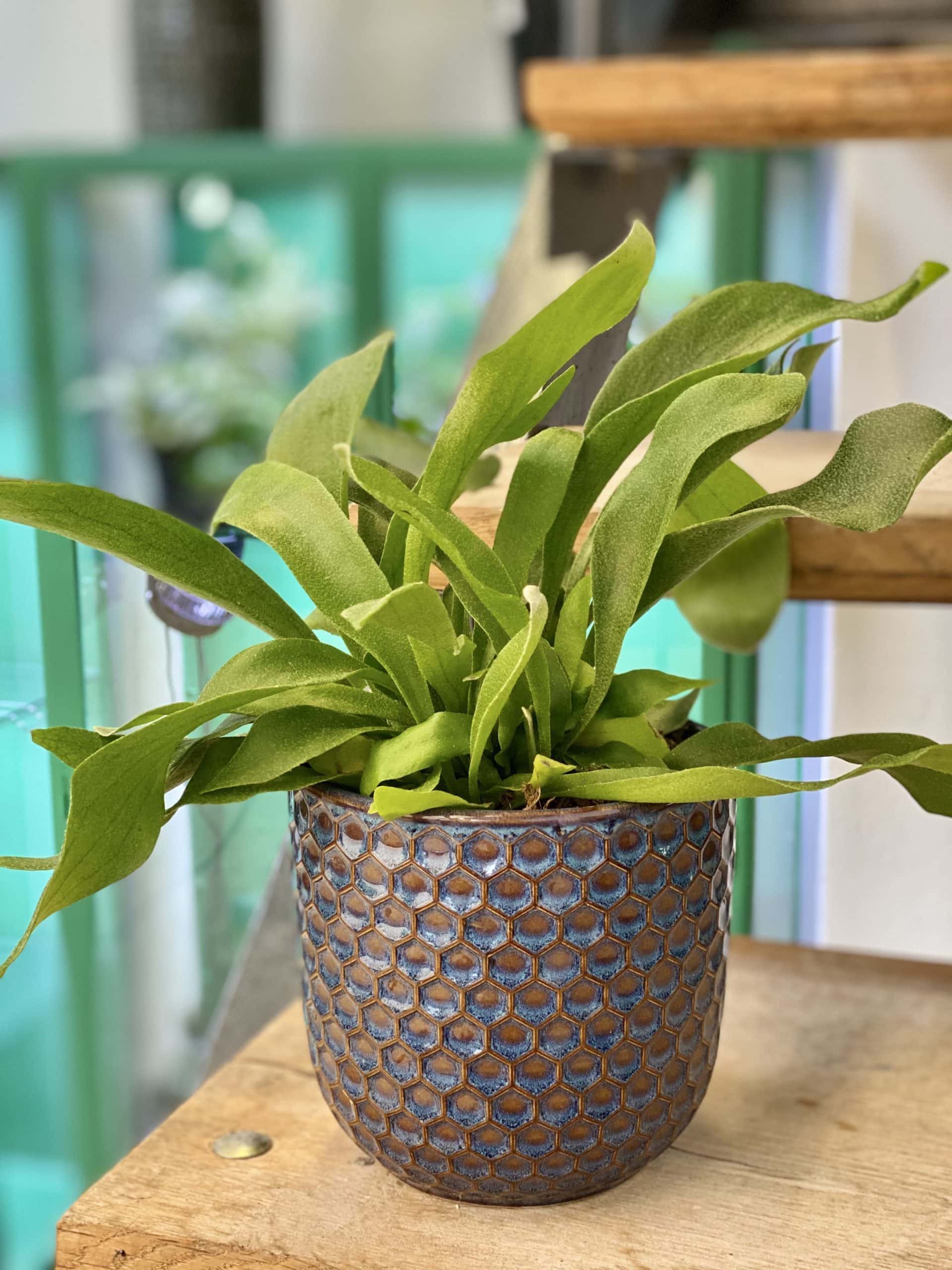Na jednym ze zdjęć osłonka prezentowana jest w zestawie z rosliną: Platycerium bifurcatum (Łosie rogi)NIEDOSTĘPNY