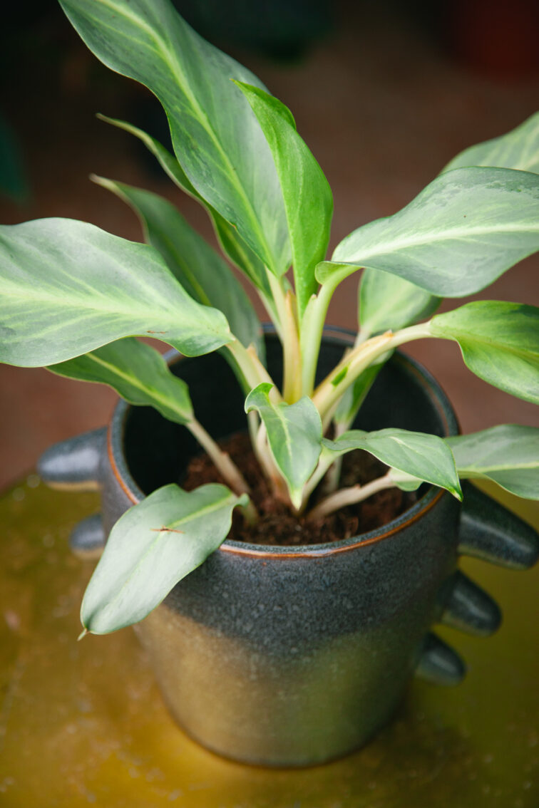 Na jednym ze zdjęć osłonka prezentowana jest w zestawie z rosliną: Aglaonema ‘Aqua green’NIEDOSTĘPNY