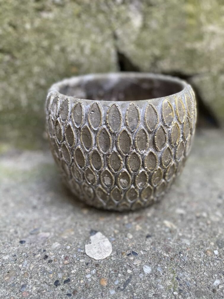 Widoczna na zdjęciu Osłonka Grzechotnik ma 12 cm średnicy oraz 12 cm wysokości.