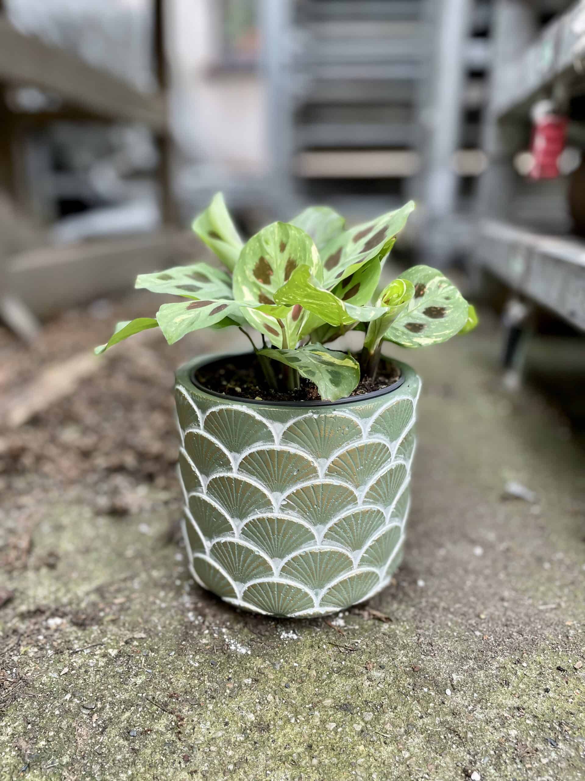 Na jednym ze zdjęć osłonka prezentowana jest w zestawie z rosliną: Maranta leuconeura Kerchoveana variegataNIEDOSTĘPNY