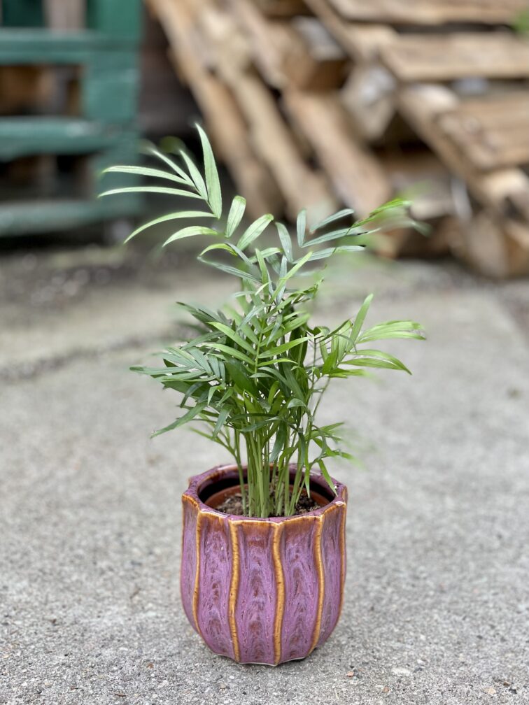 Na jednym ze zdjęć osłonka prezentowana jest w zestawie z rosliną: Chamaedorea elegans (Chamedora wytworna)NIEDOSTĘPNY