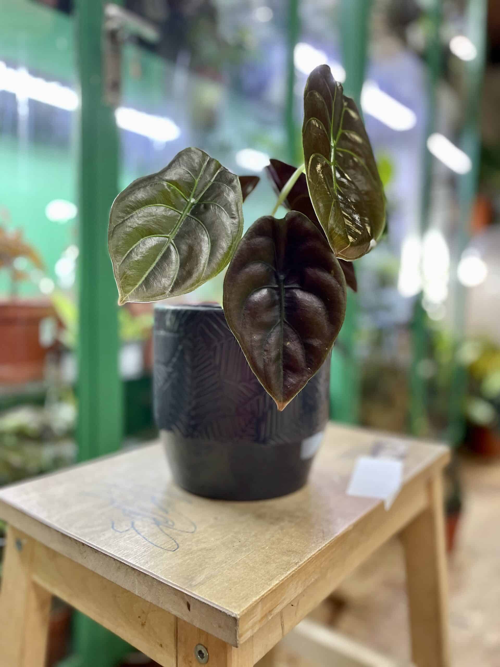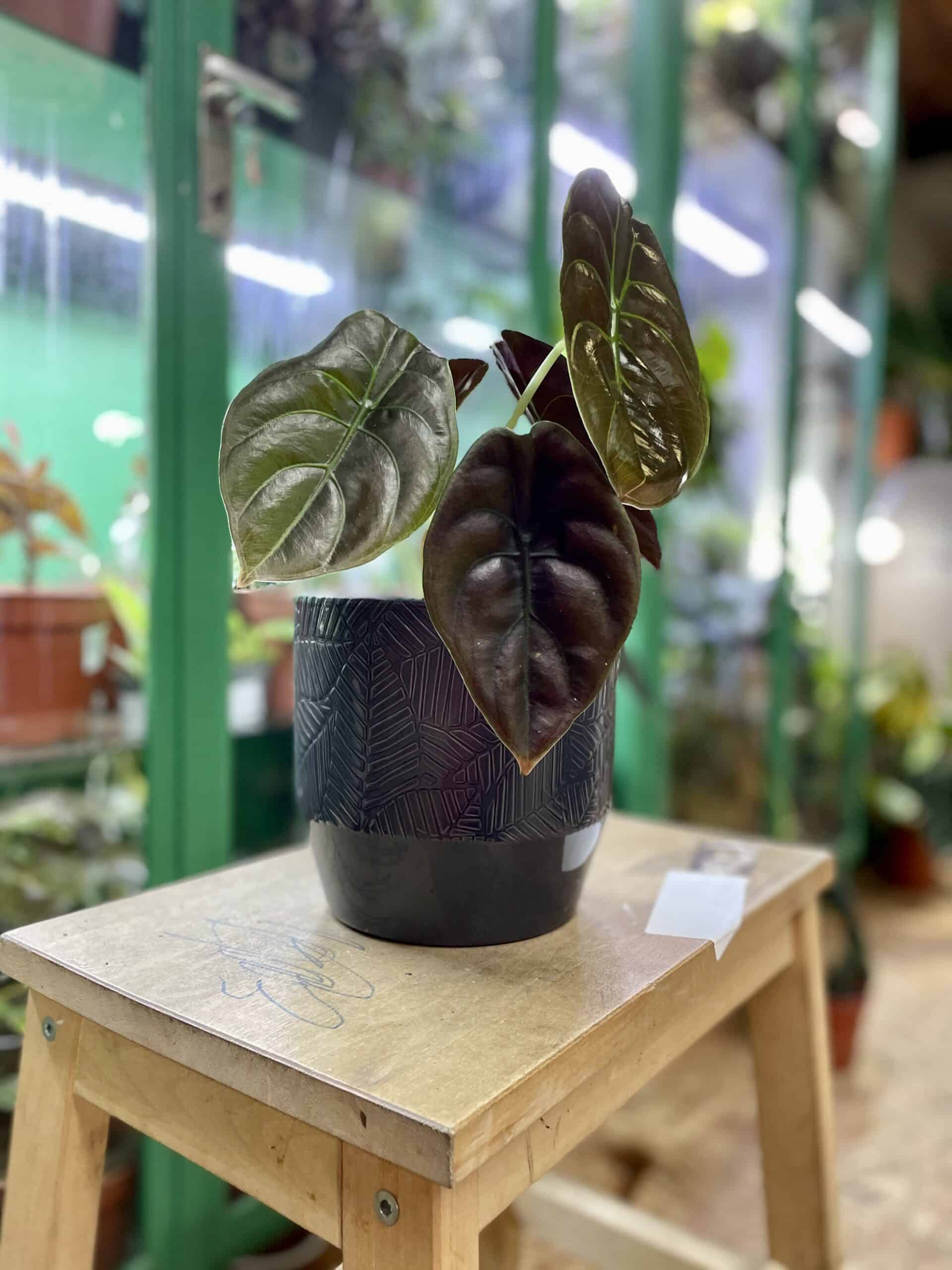 Na jednym ze zdjęć osłonka prezentowana jest w zestawie z rosliną: Alocasia Red SecretNIEDOSTĘPNY