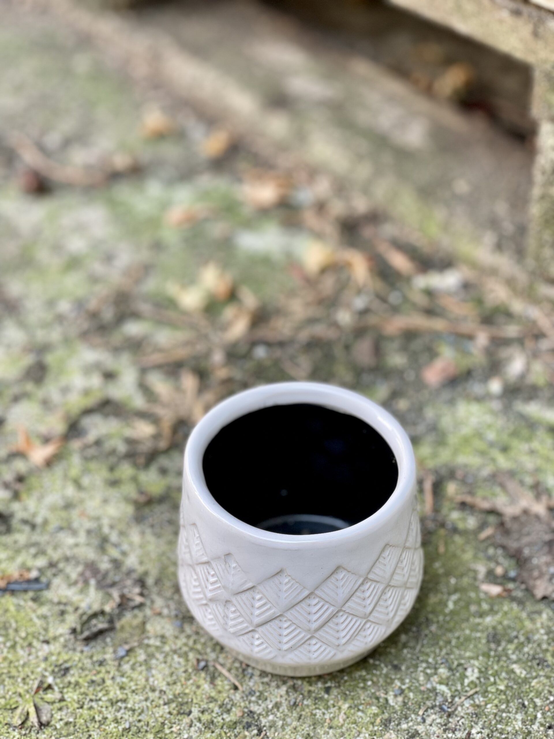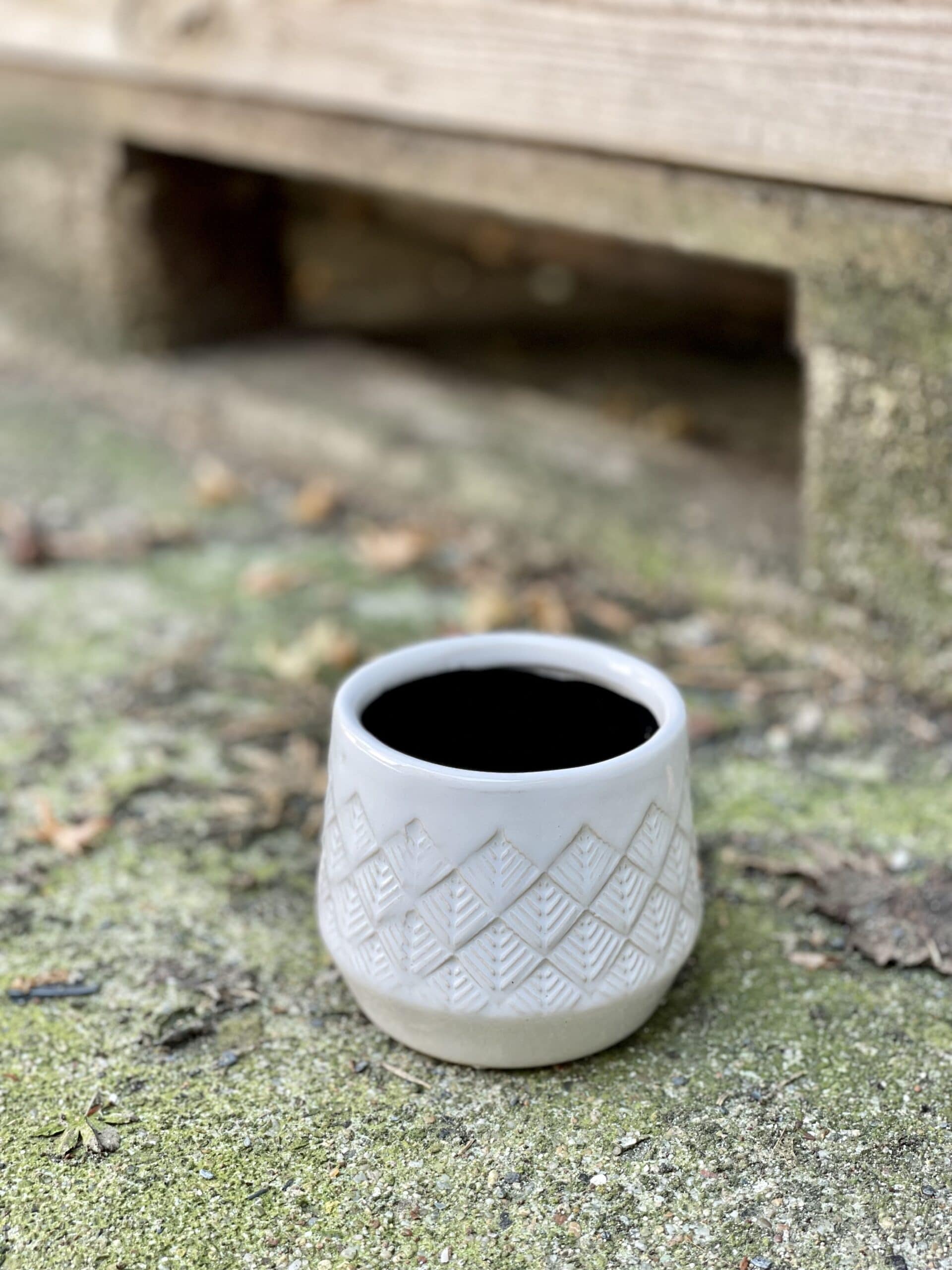 Na jednym ze zdjęć osłonka prezentowana jest w zestawie z rosliną: Calathea makoyana (Kalatea Makoya)NIEDOSTĘPNY