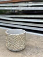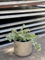 Na jednym ze zdjęć osłonka prezentowana jest w zestawie z rosliną: Ficus pumila White Sunny (Figowiec / Fikus pnący)NIEDOSTĘPNY