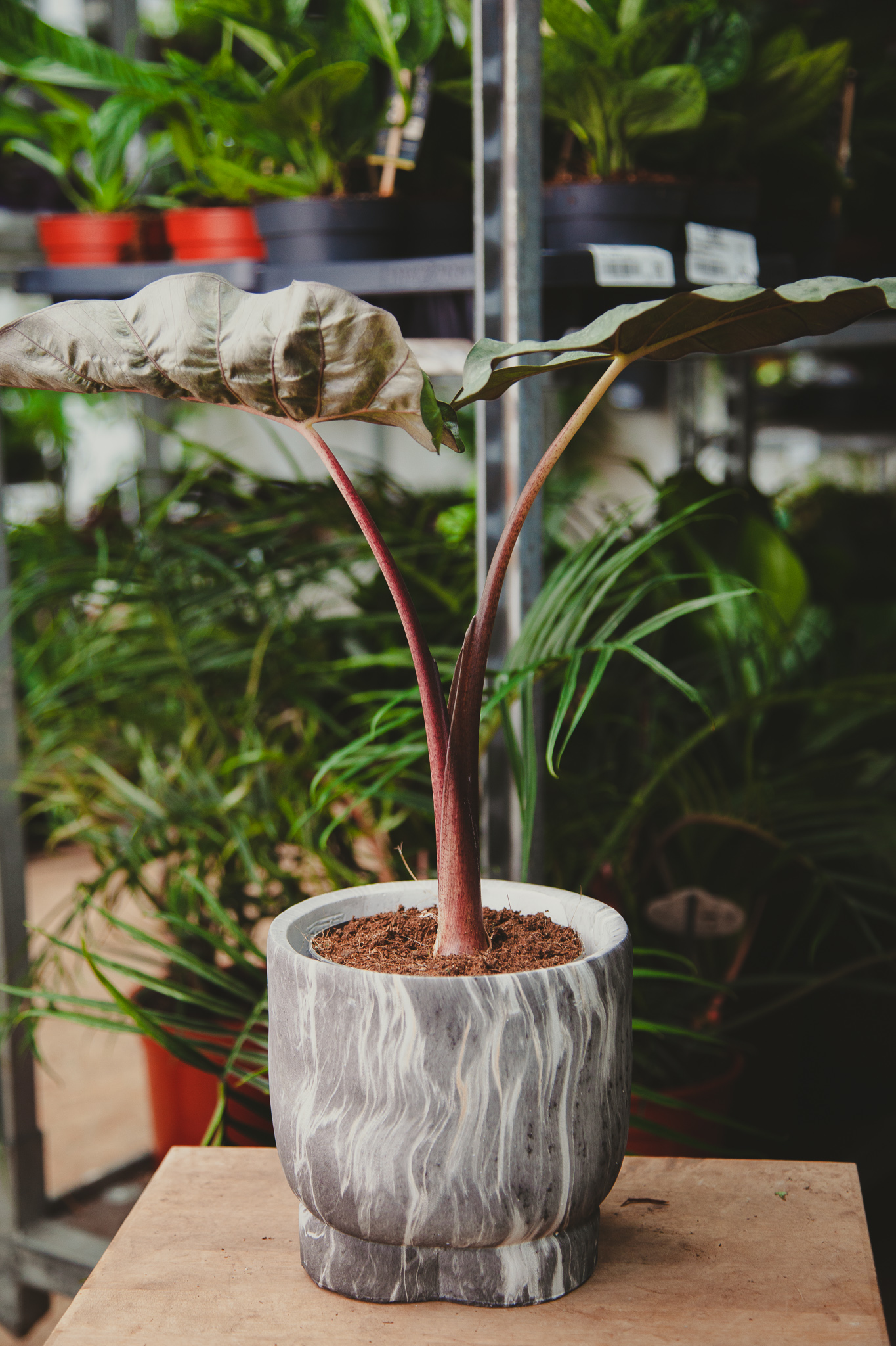 Na jednym ze zdjęć osłonka prezentowana jest w zestawie z rosliną: Alocasia Yucatan PrincessNIEDOSTĘPNY