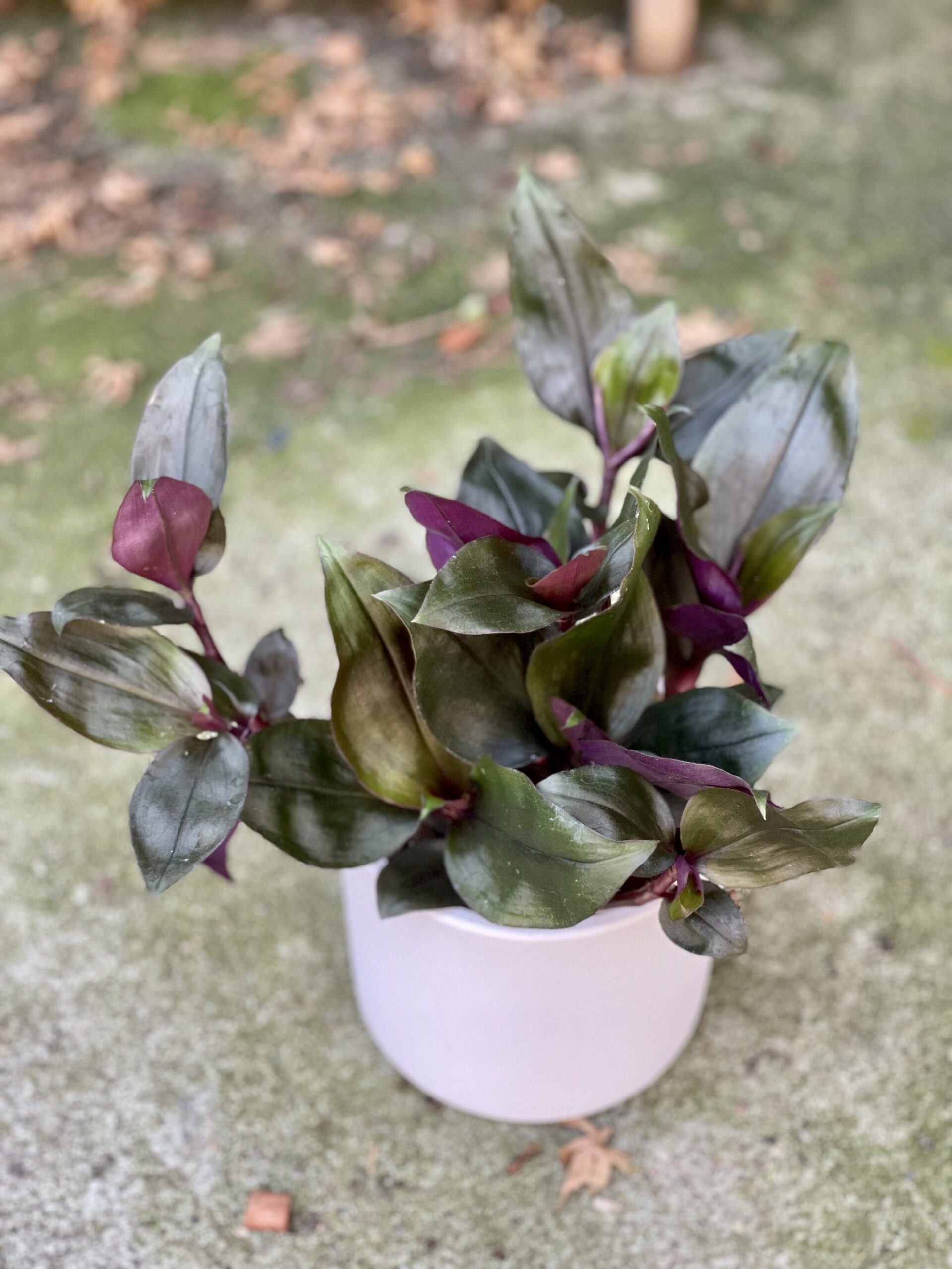 Na jednym ze zdjęć osłonka prezentowana jest w zestawie z rosliną: Tradescantia spathacea Roxxo (Trzykrotka)NIEDOSTĘPNY