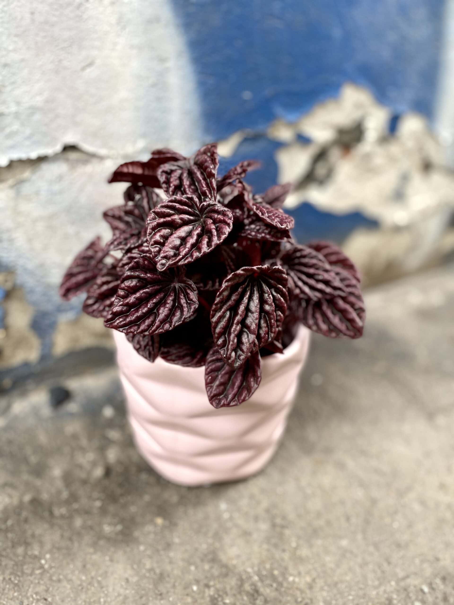 Na jednym ze zdjęć osłonka prezentowana jest w zestawie z rosliną: Peperomia caperata Schumi RedNIEDOSTĘPNY