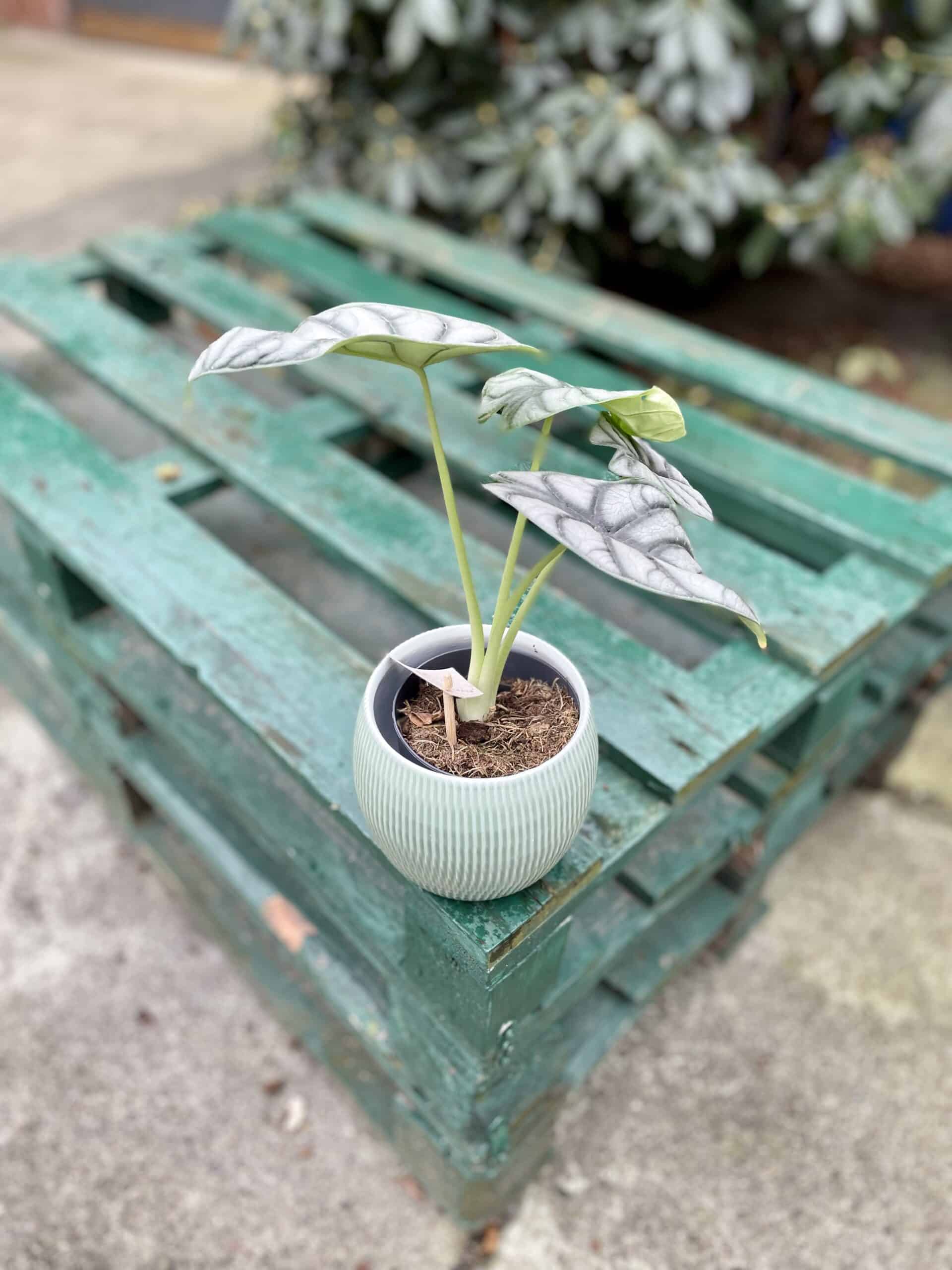 Na jednym ze zdjęć osłonka prezentowana jest w zestawie z rosliną: Alocasia baginda Silver DragonNIEDOSTĘPNY