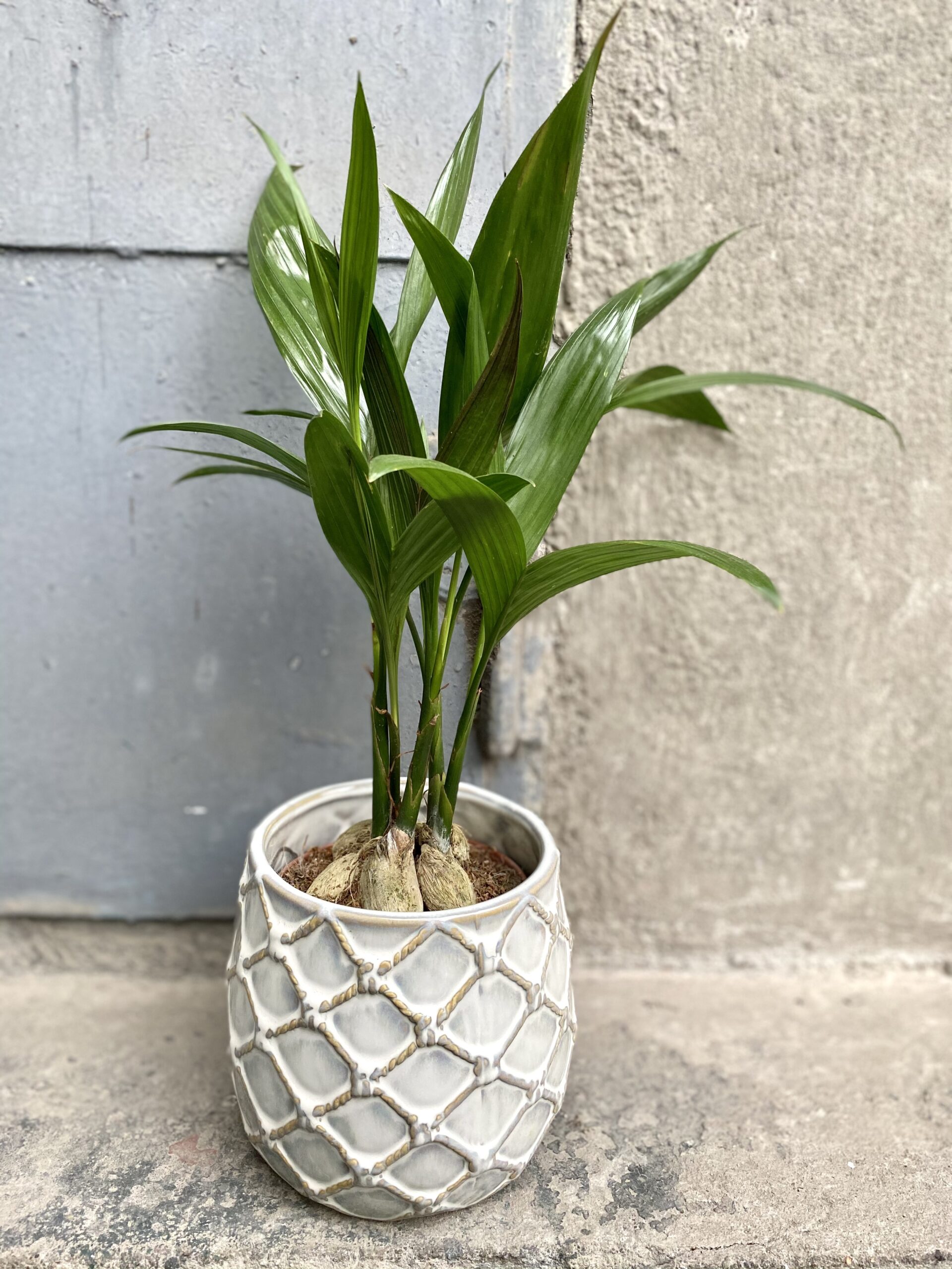 Na jednym ze zdjęć osłonka prezentowana jest w zestawie z rosliną: Areca catechu (Palma betelowa)NIEDOSTĘPNY