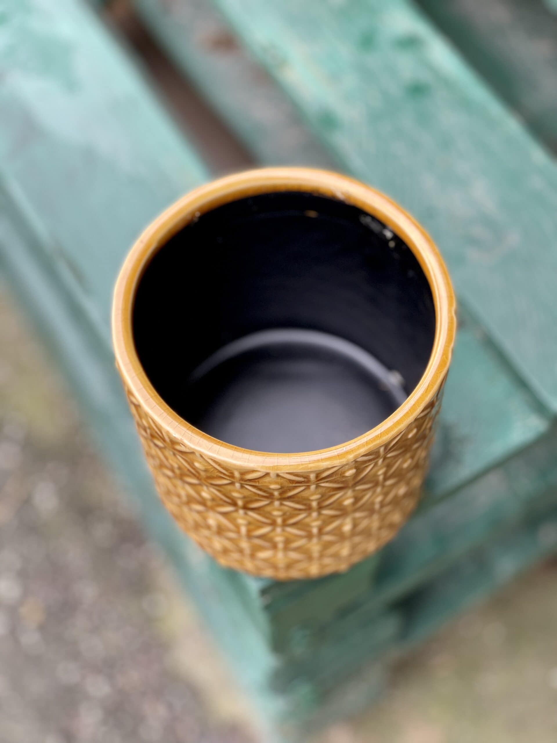 osłonka yellow tiles nadaje się do roślin z doniczką o średnicy od 9 cm do 12 cm, oraz wysokości mniejszej niż 13 cm.