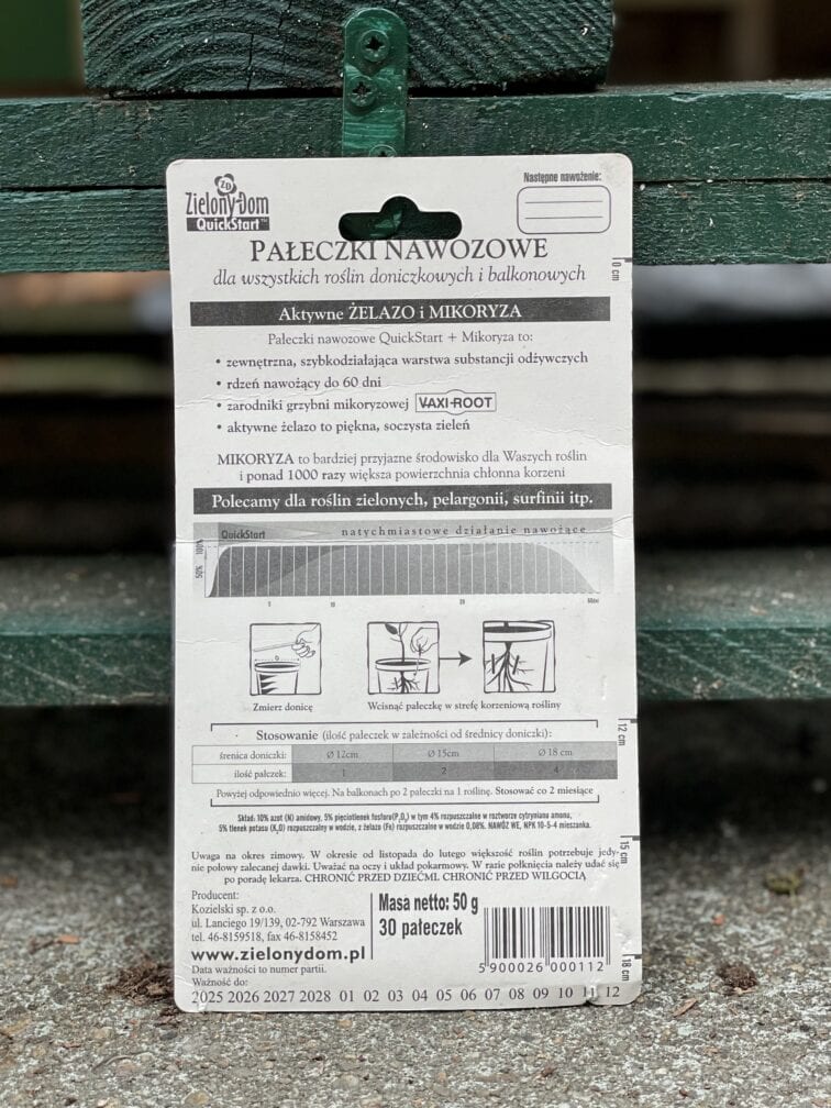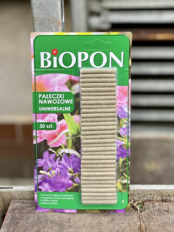 Nawóz uniwersalny w wygodnej formie pałeczek. Odpowiednia dawka nawozu w pałeczkach wystarcza aż na dwa miesiące. W tym czasie roślina nie potrzebuje dodatkowego nawożenia. Opakowanie zawiera 30 sztuk pałeczek. 1 pałeczka wystarcza na doniczkę o średnicy 12 cm.