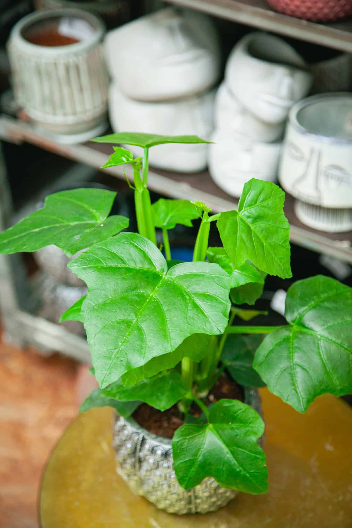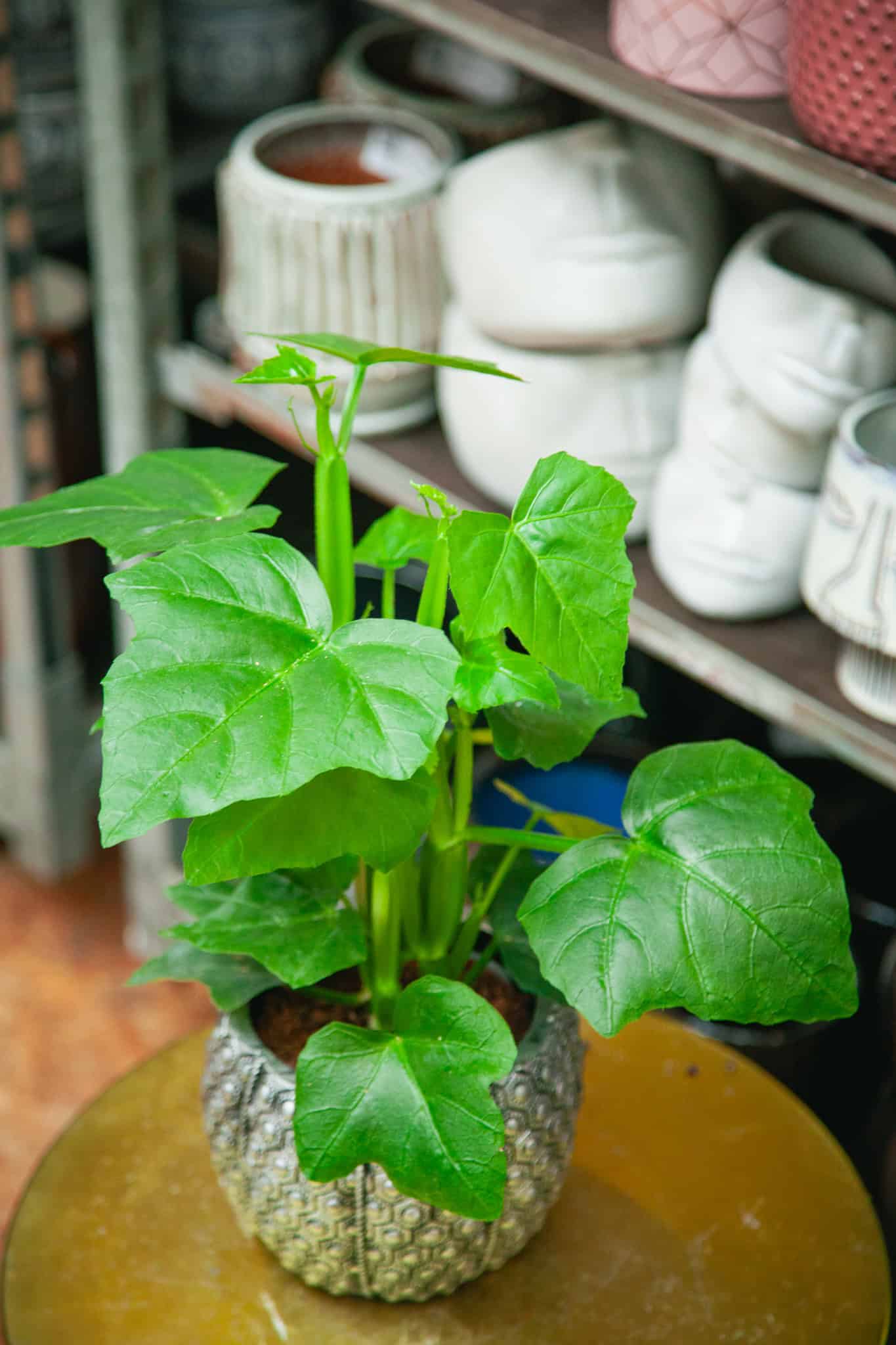 Widoczna na zdjęciu roślina: Parthenocissus quadrangularis ma wysokość około 20 cm. Jej doniczka ma 12 cm średnicy oraz 10 cm wysokości.