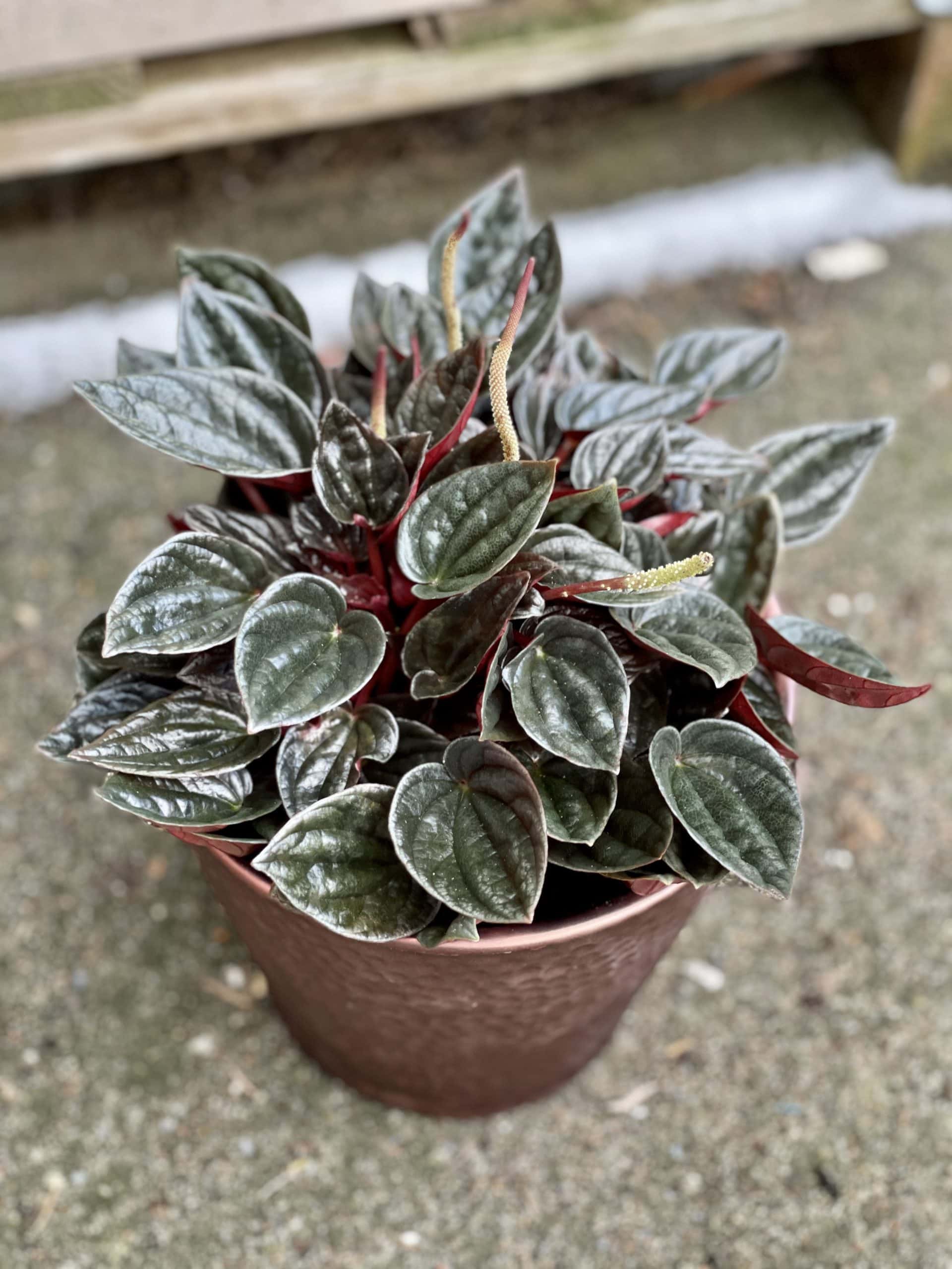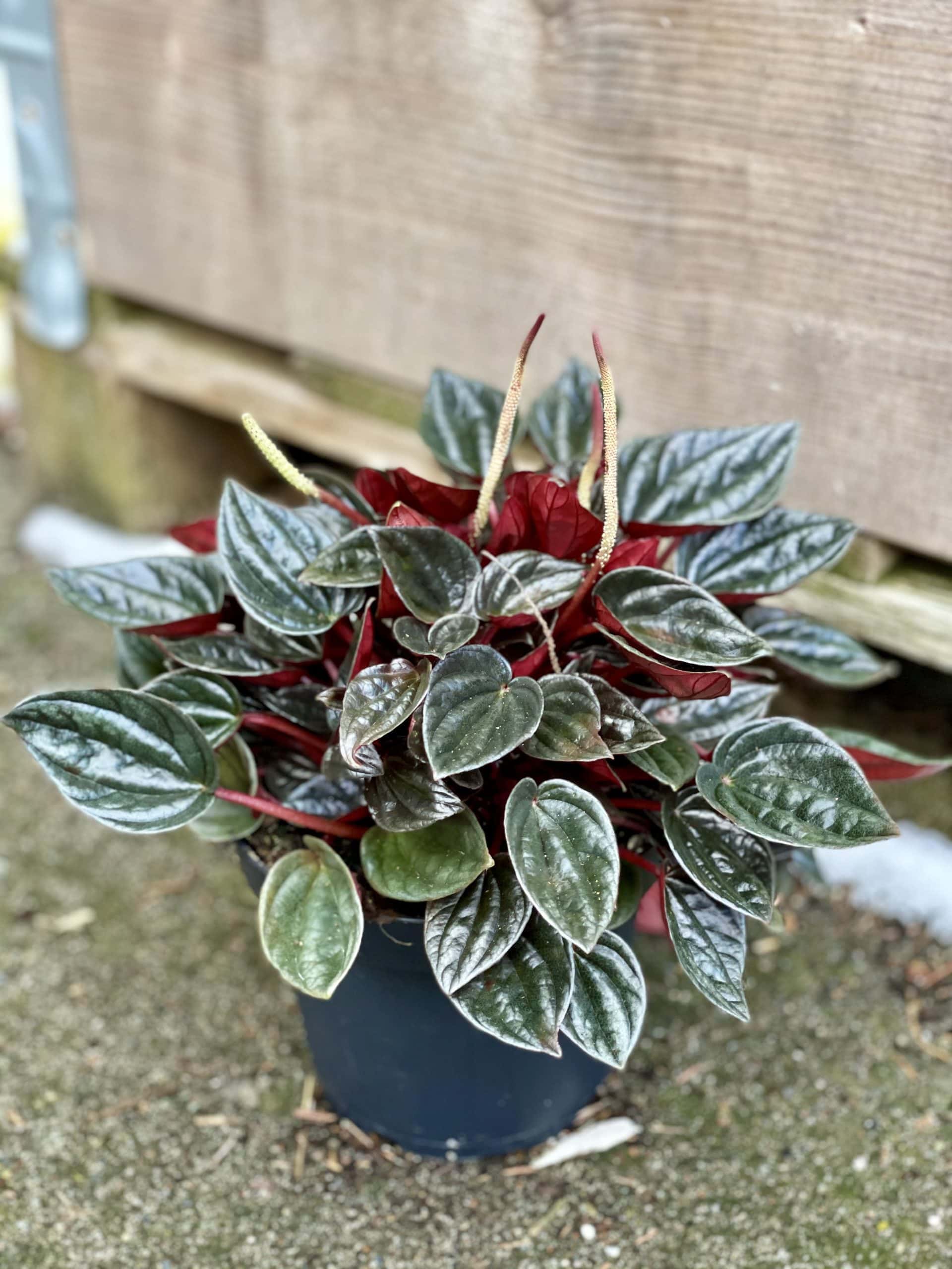 Peperomia alias Pieprzówka występuje w tysiącach odmian. Caperata Brasilia to bogactwo skórzastych, srebrzystych listków o bardzo wyraźnie zaznaczonym, dekoracyjnym unerwieniu i pięknie kontrastującym, bordowym spodzie.