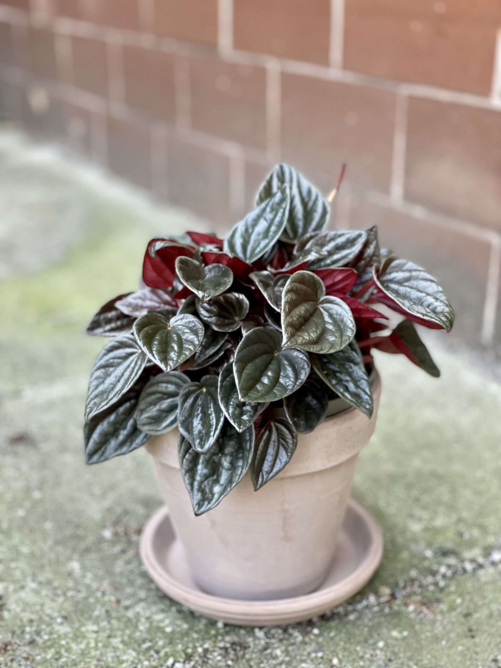 Peperomia alias Pieprzówka występuje w tysiącach odmian. Caperata Brasilia to bogactwo skórzastych, srebrzystych listków o bardzo wyraźnie zaznaczonym, dekoracyjnym unerwieniu i pięknie kontrastującym, bordowym spodzie.