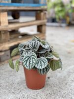 Widoczna na zdjęciu roślina: Peperomia caperata burbella ma wysokość około 25 cm. Jej doniczka ma 15 cm średnicy oraz 15 cm wysokości.