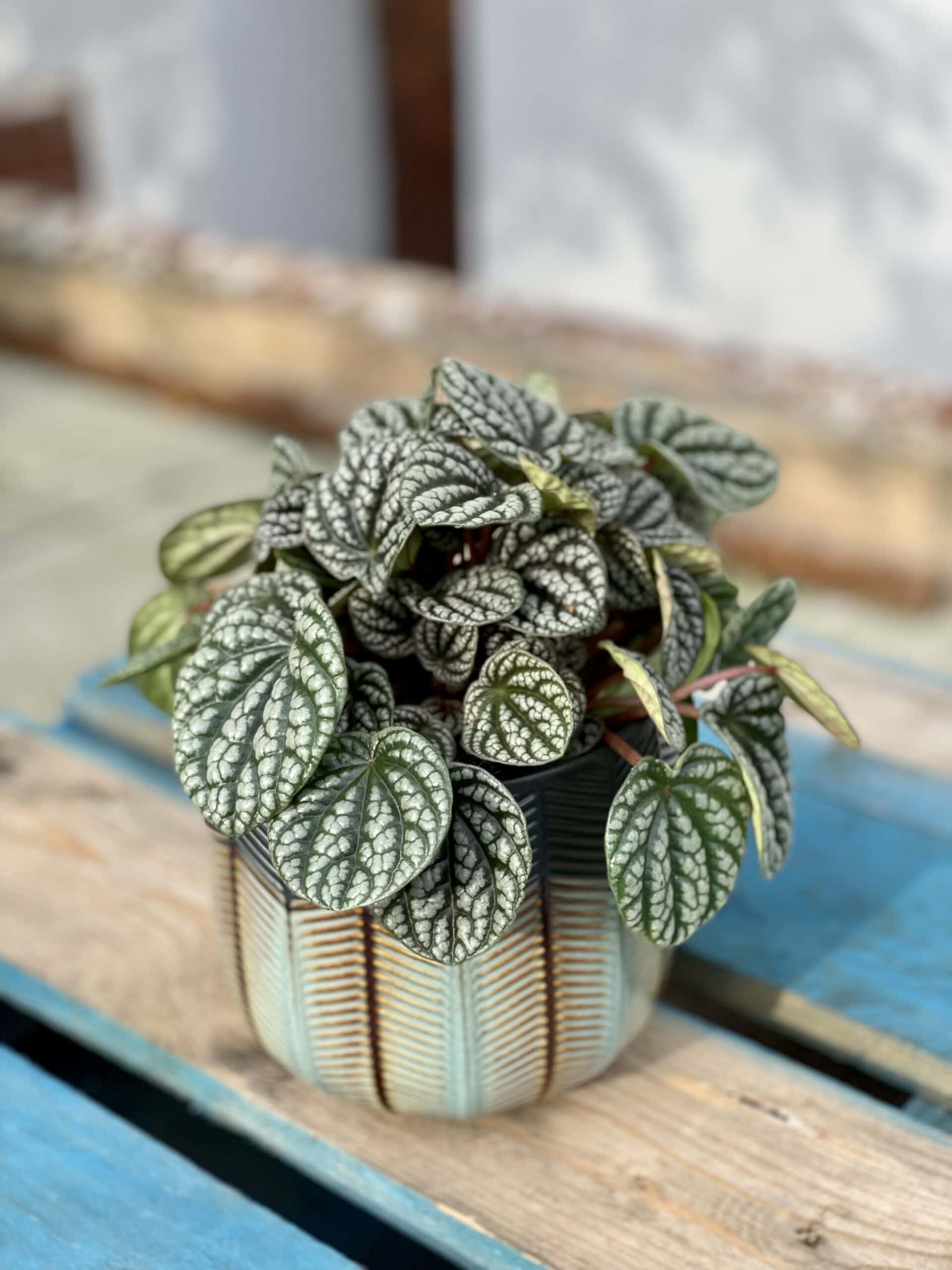 Oryginalne owalne liście peperomii caperata Burbella to zdecydowanie coś, co przyciąga uwagę. Tłoczona faktura blaszki liściowej i ciemnozielone liście ze srebrnymi fragmentami będą cieszyć Twoje oko na długo, jeśli tylko zapewnisz jej odpowiednie warunki.
