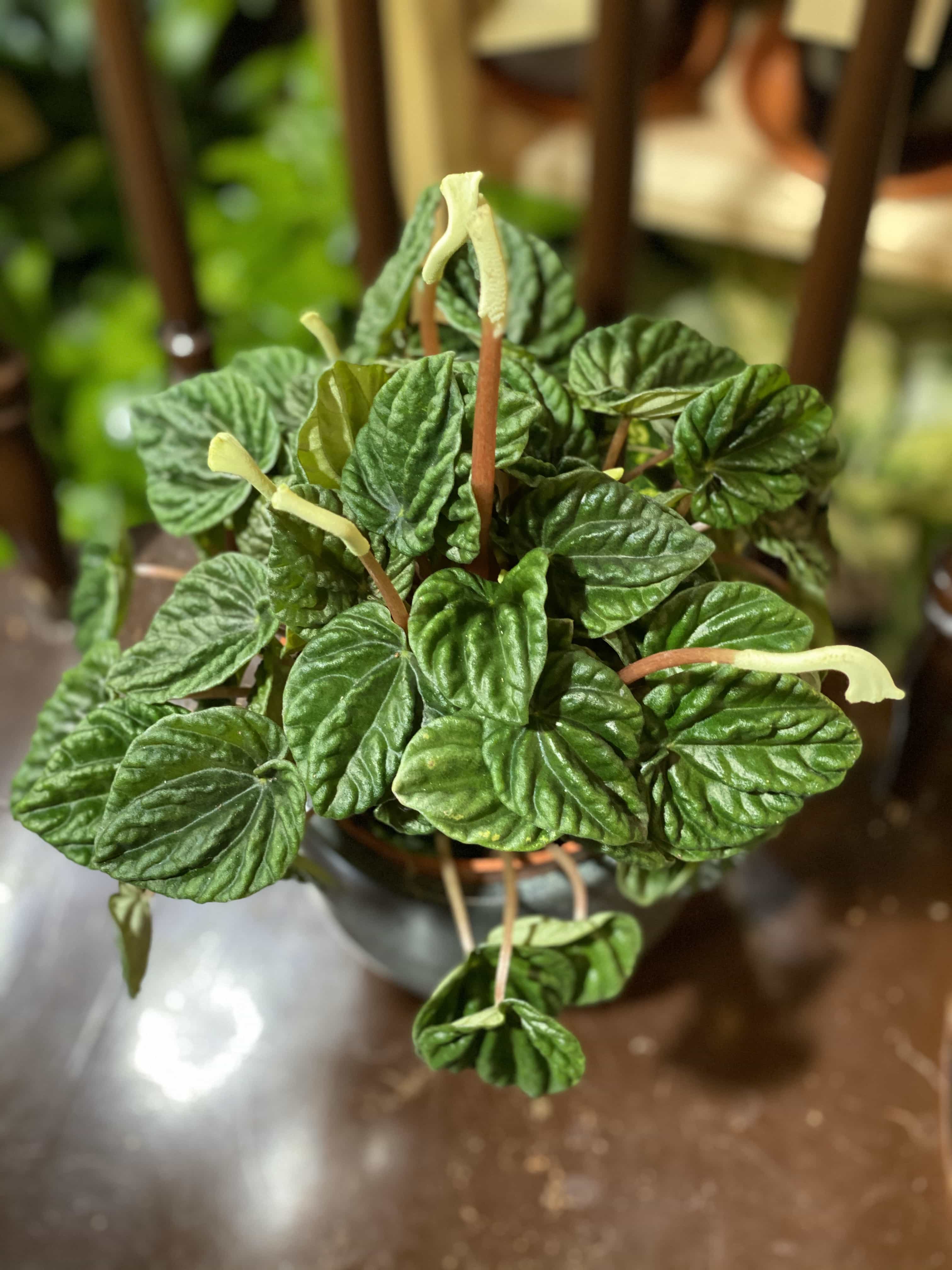 Peperomia o gęstym pokroju i atrakcyjnych białych kwiatach. Niewielki rozmiar i skromne wymagania czynią z niej idealną roślinę dla początkujących zielonomaniaków.